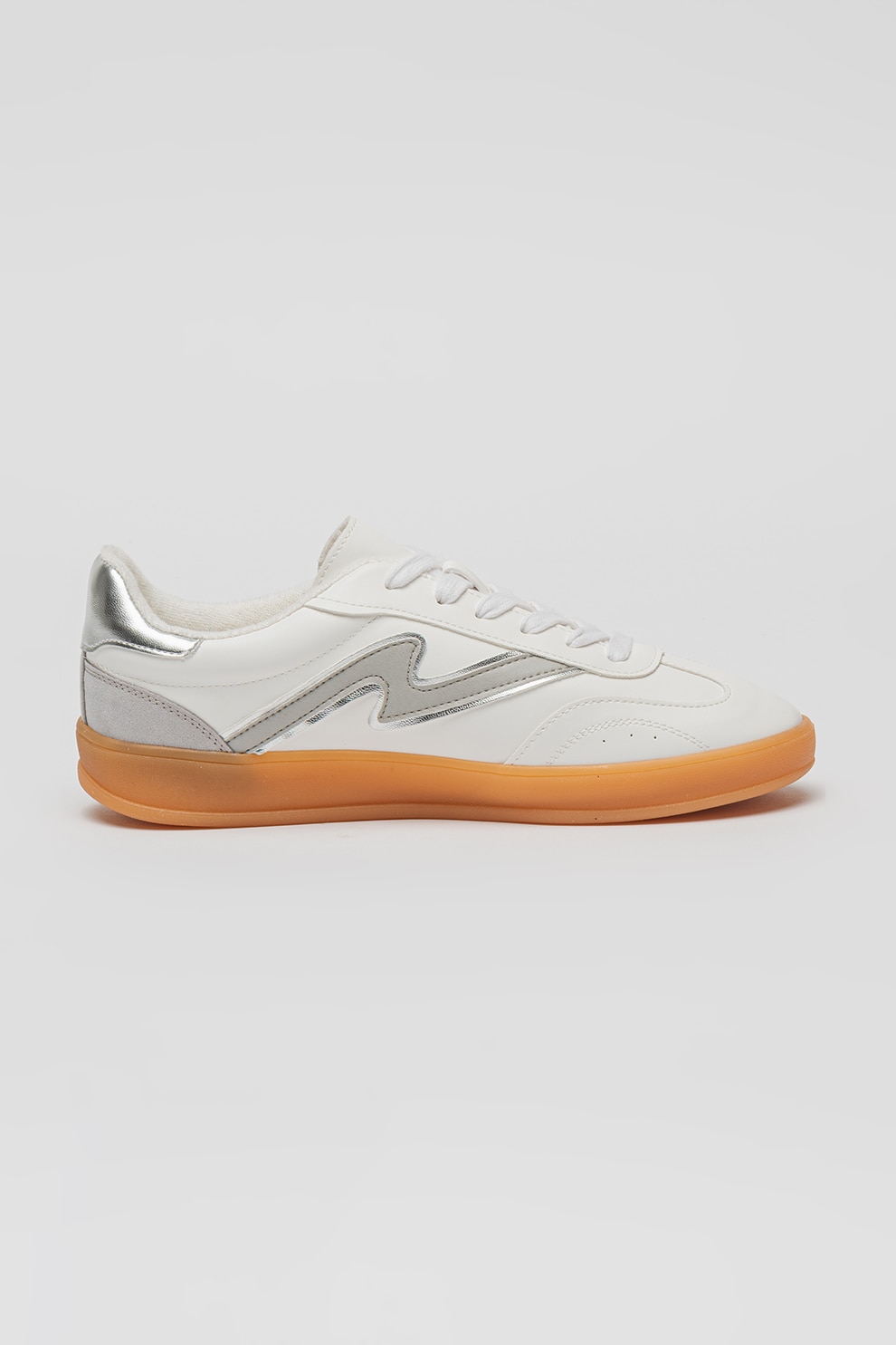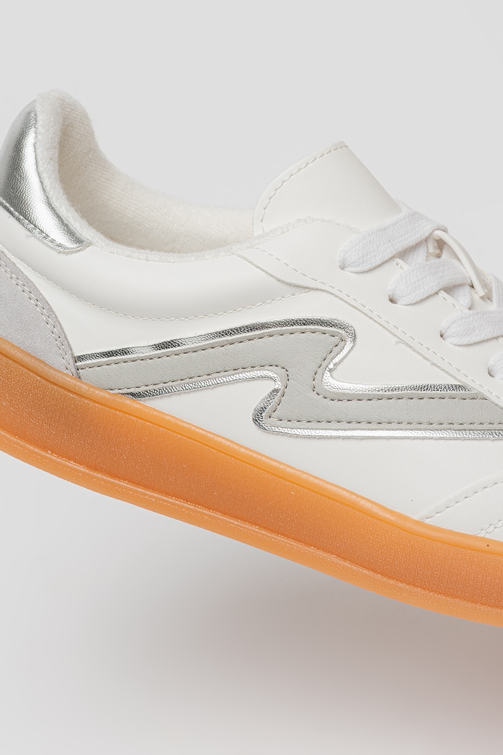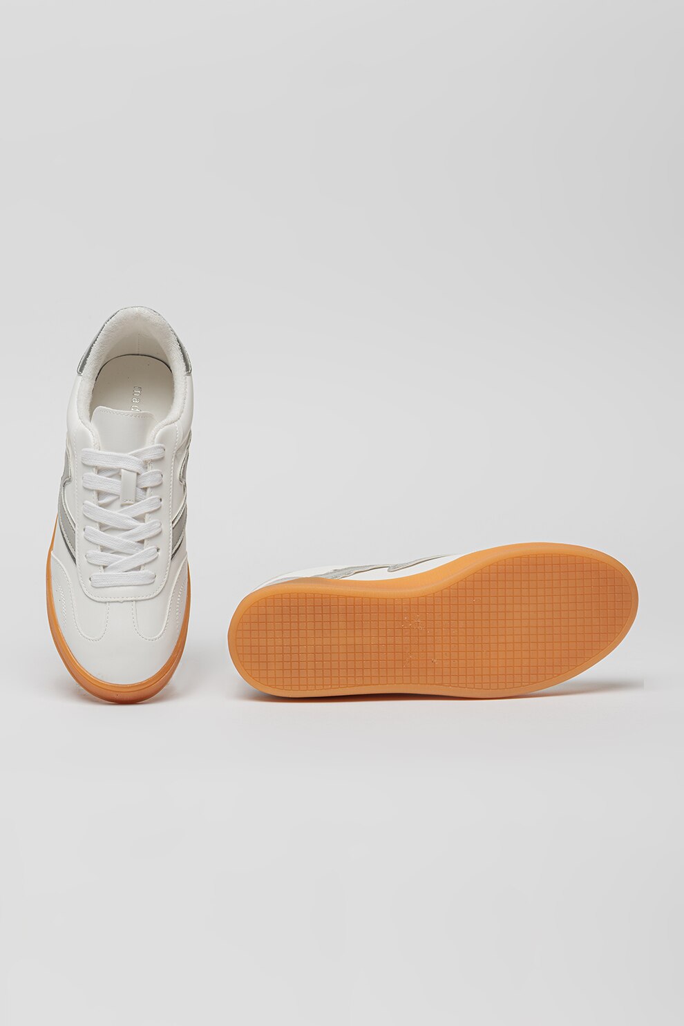 Steve Madden - Pantofi sport de piele ecologica cu sireturi Giia, Alb, Gri cenusiu, Argintiu, 41