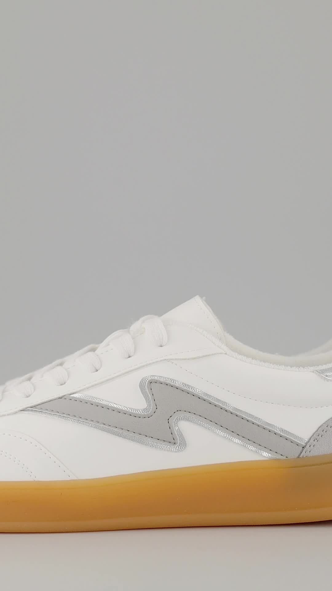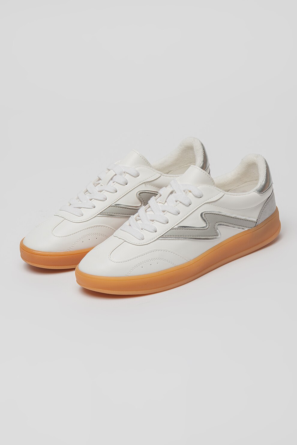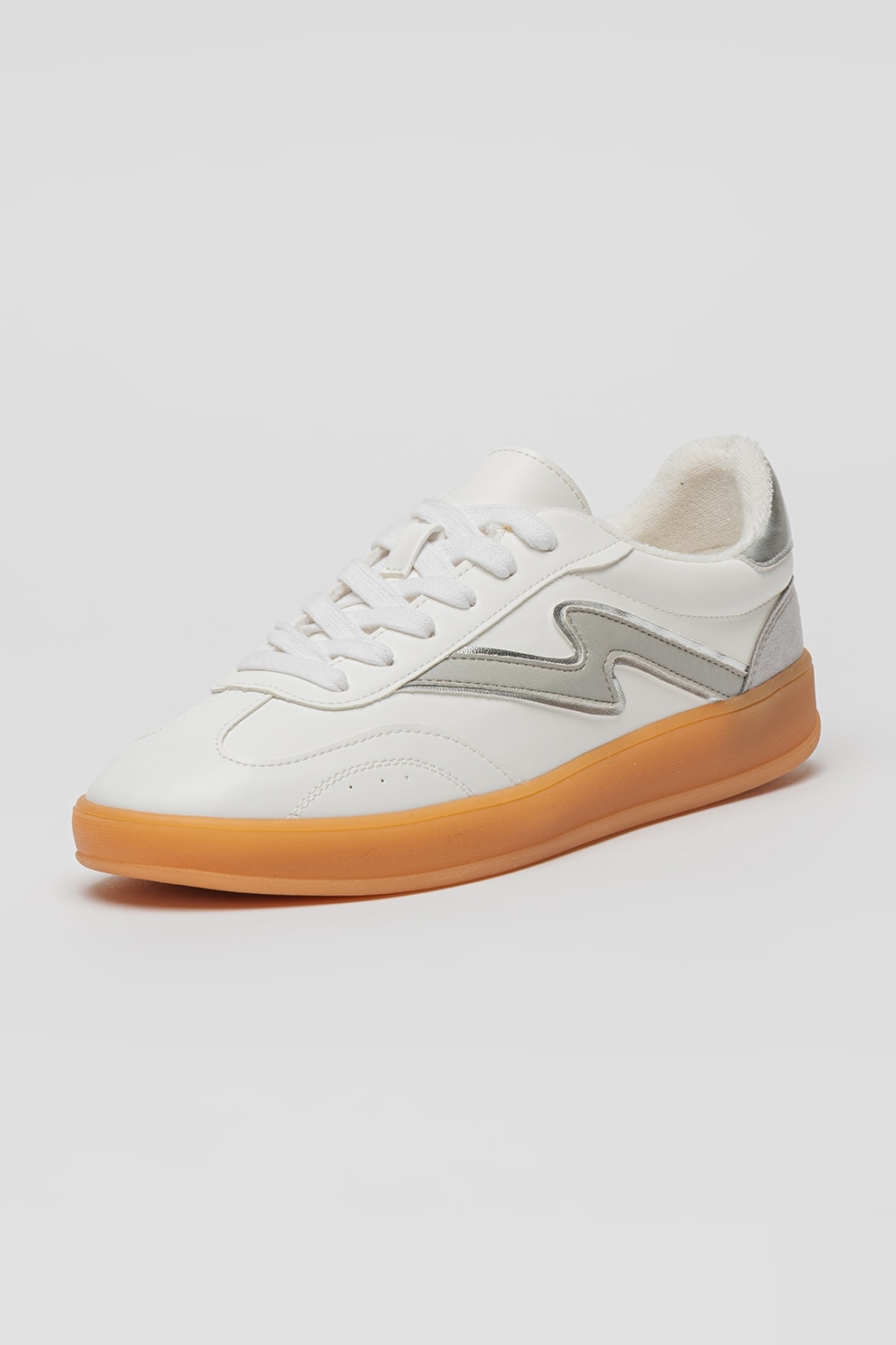Steve Madden - Pantofi sport de piele ecologica cu sireturi Giia, Alb, Gri cenusiu, Argintiu, 41