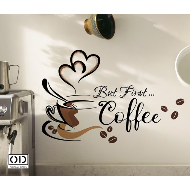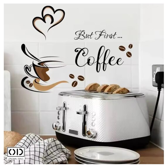 Sticker Decorativ pentru Perete sau Mobila Bucatarie, din PVC Autoadeziv, Model Ceasca de Cafea, Dimensiune 37 x 23 cm, ORIGINAL DEALS