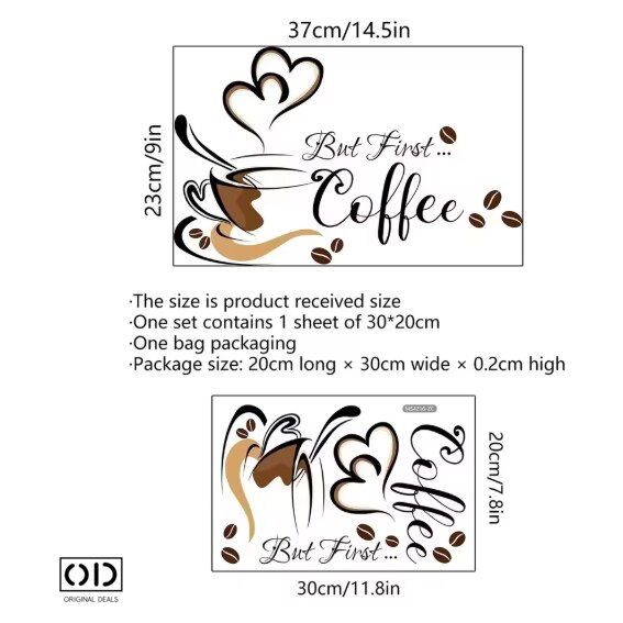 | Continut pachet | Sticker Decorativ Ceasca de Cafea - ORIGINAL DEALS |