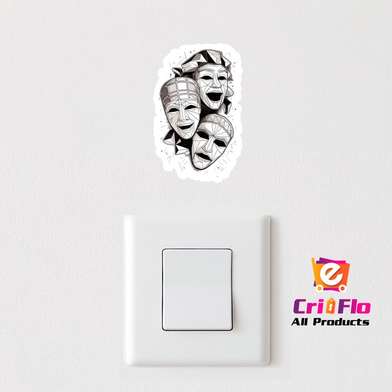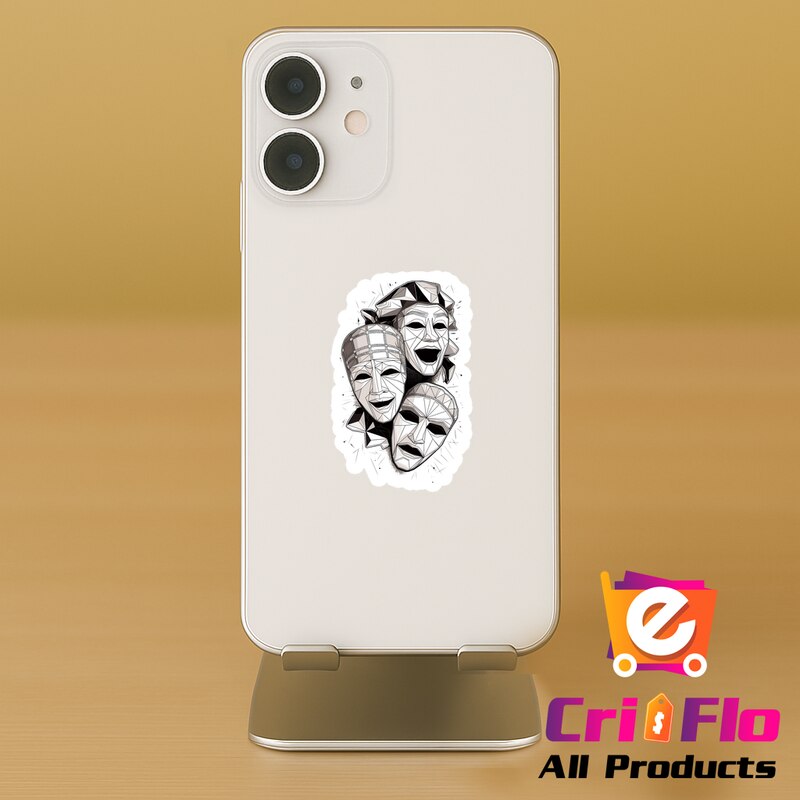 Sticker Masti Teatru Alb Negru Abstract, Autoadeziv, Cri-Flo, Marime 6 cm