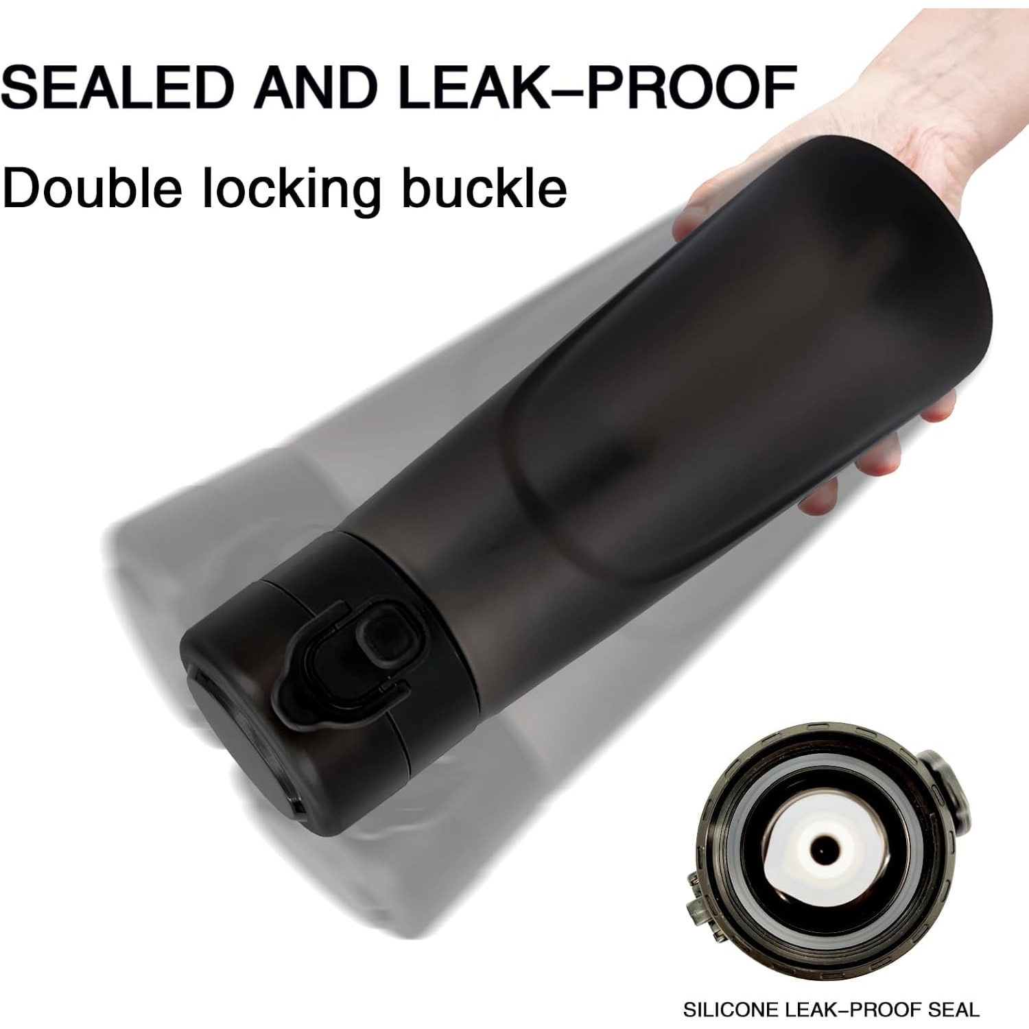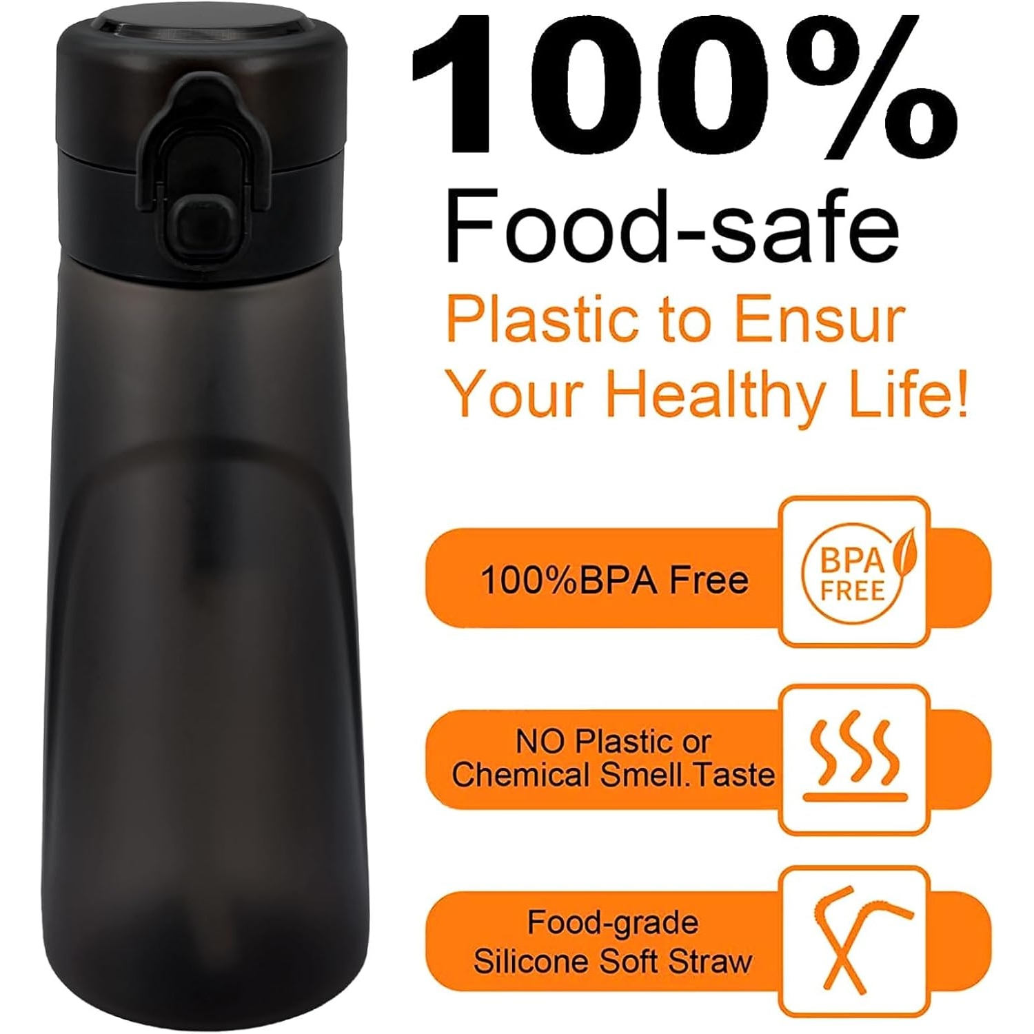 Sticla de apa cu capsule aromate, VPUINEFE, sticla sport cu pai, ideala pentru sala, activitati in aer liber(Negru mat + 5 capsule de arome)