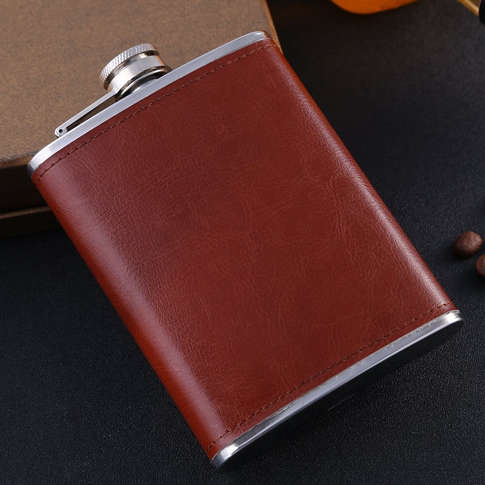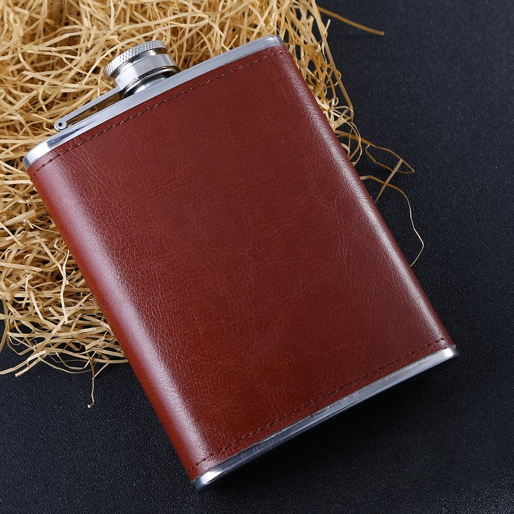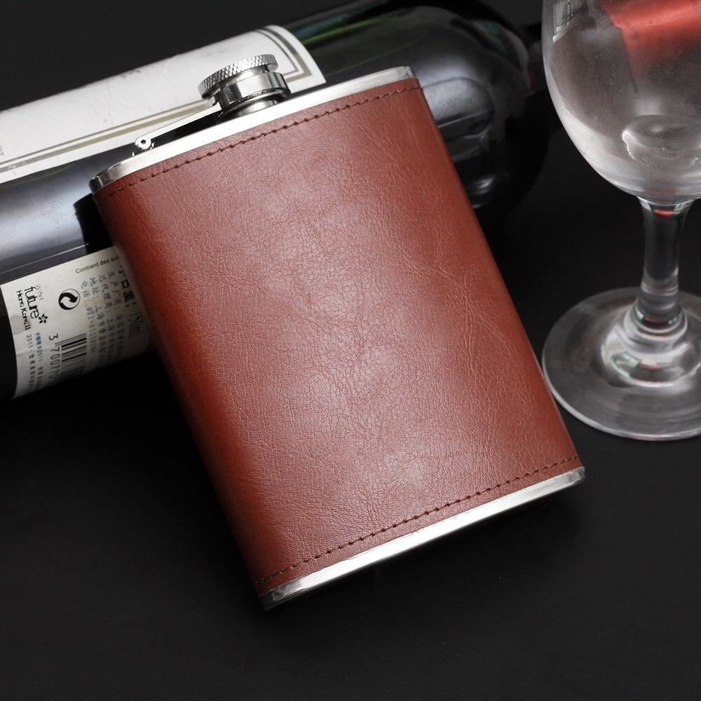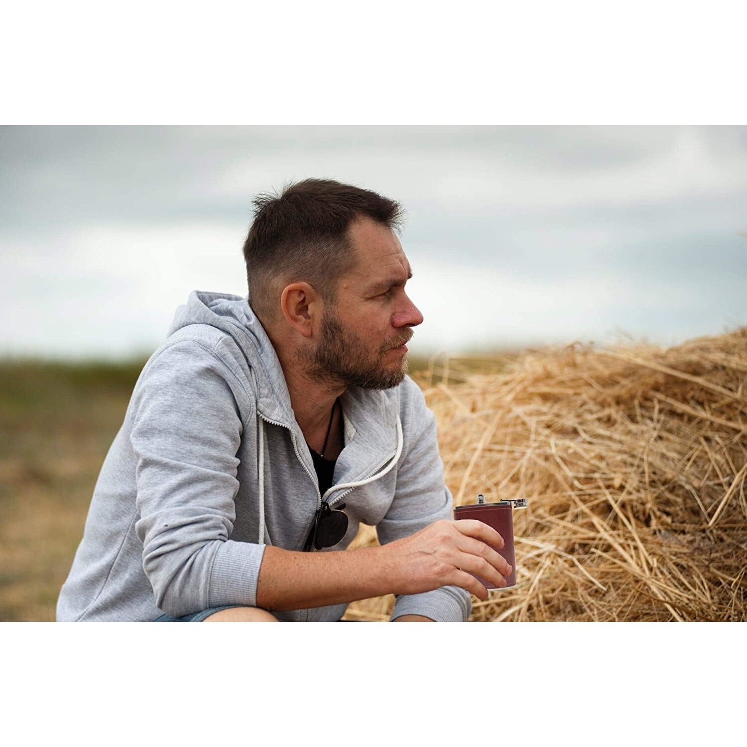 Sticla metalica de buzunar, Zola®, pentru tarie, maro, 240 ml, 13.5x9 cm
