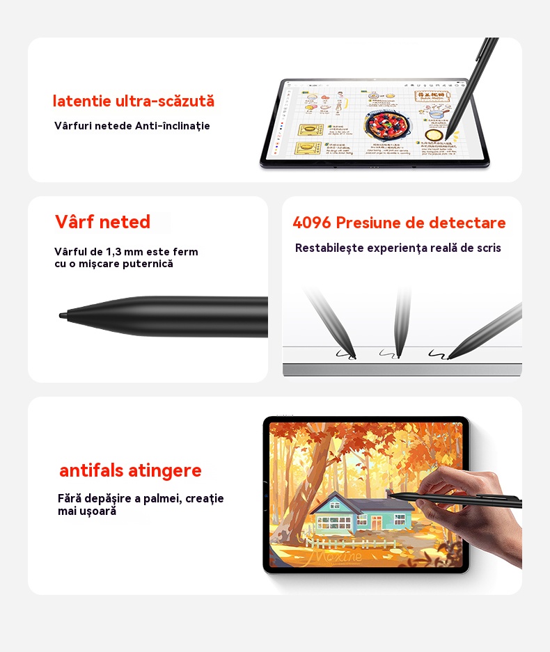 | Continut pachet | 1 x Manual RO/EN 1 x Stylus Pen 3 x Penite 1 Cablu USB Type-C |