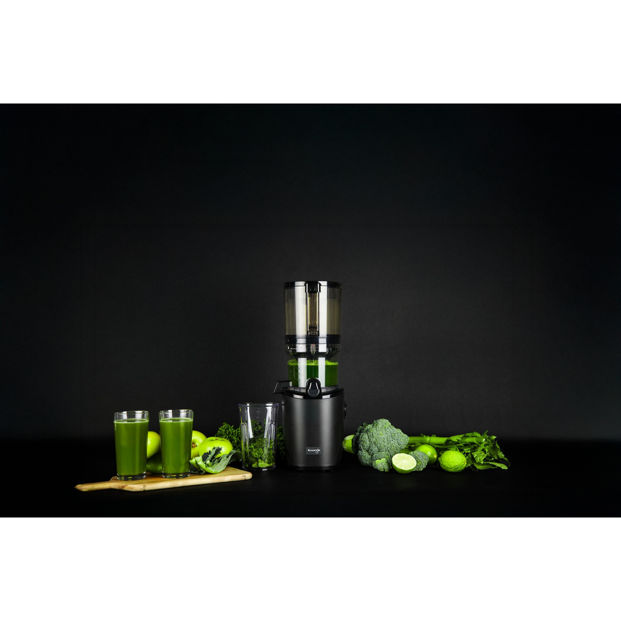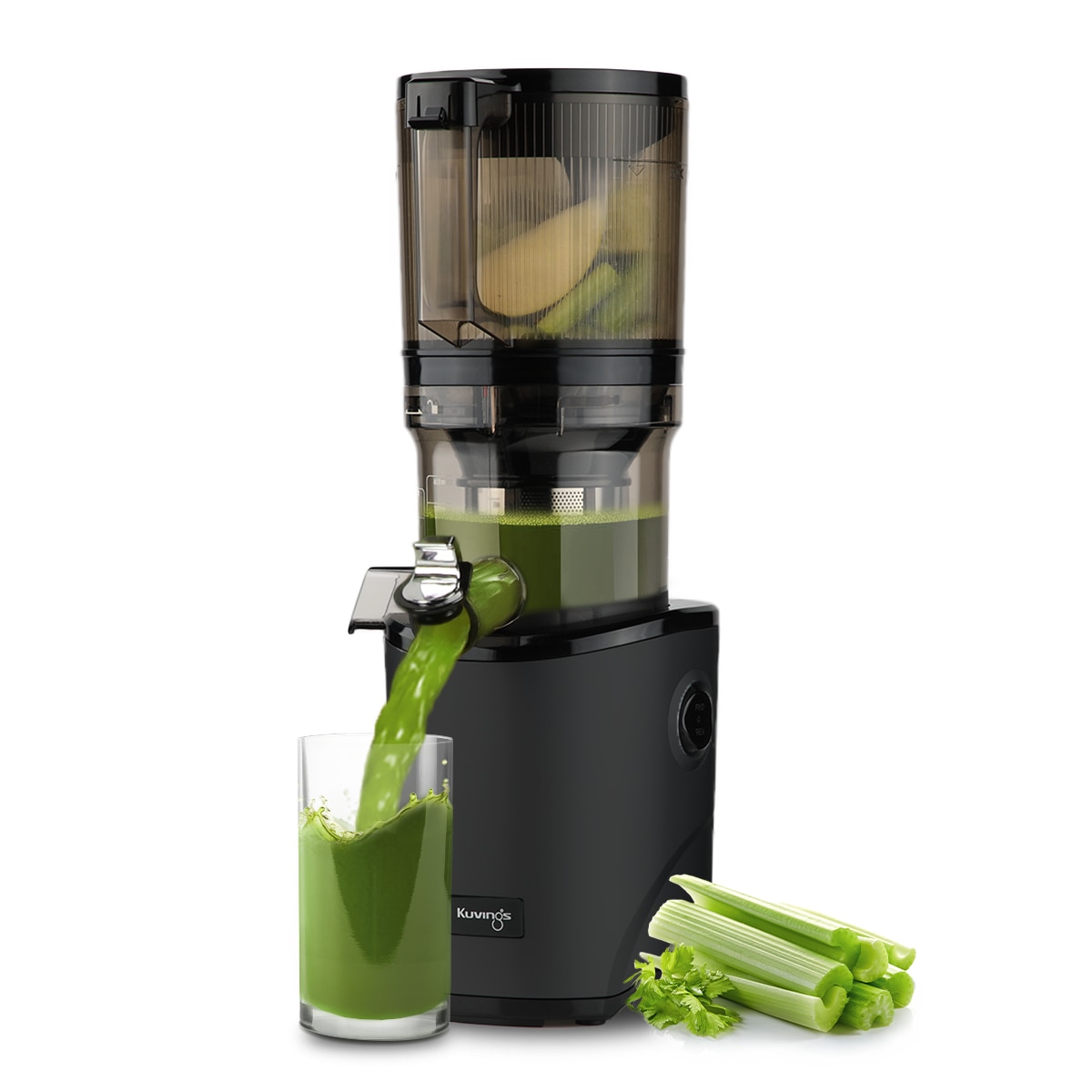 Storcator de fructe lent - Kuvings AUTO8 HANDS-FREE SLOW JUICER, KHS850S, recipient 2000ml, 139mm, tocare automata, functie revers, accesoriu sorbet si inghetata, fabricat in Coreea, negru perlat mat