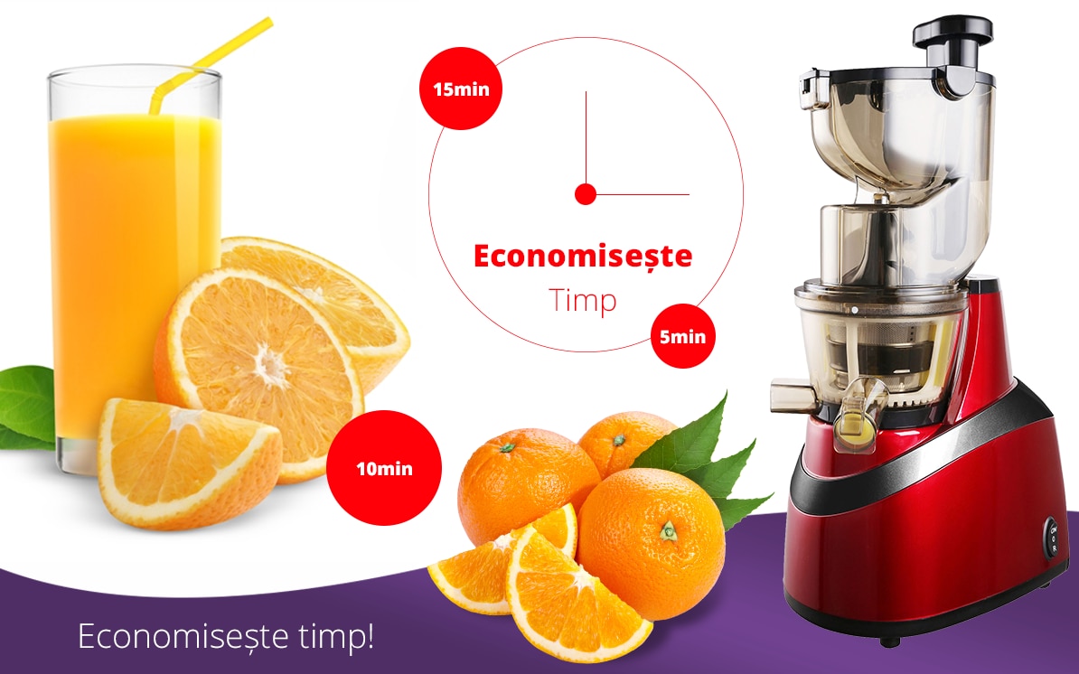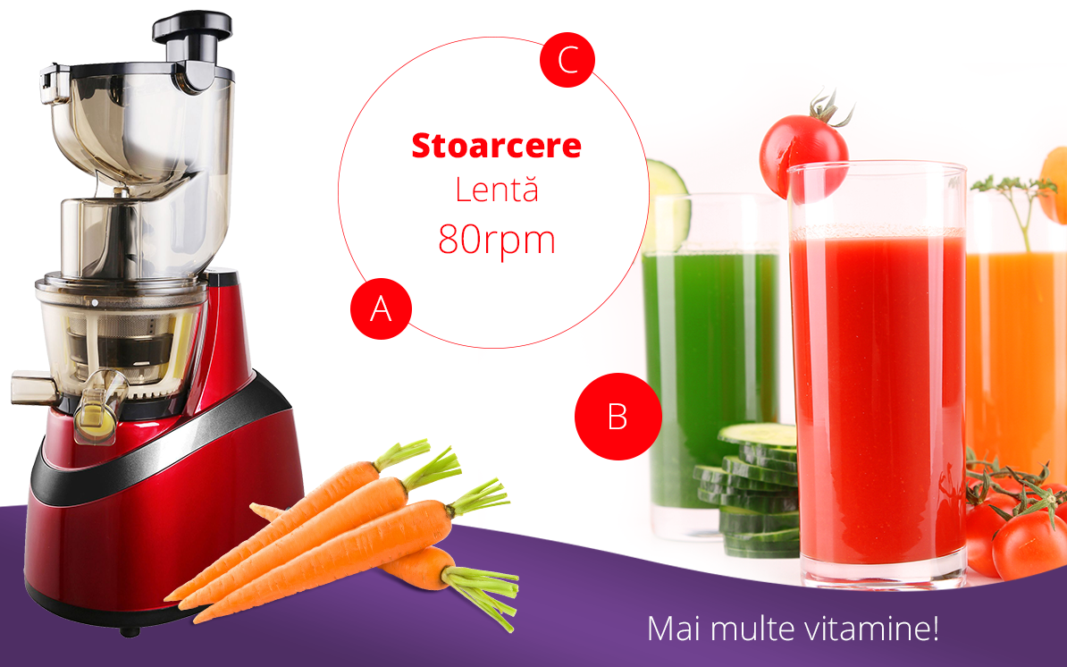 Storcator de fructe si legume cu melc Star-Light SJB-240R, 240 W, 80 RPM, functie reverse, tub XXL, rosu/ negru