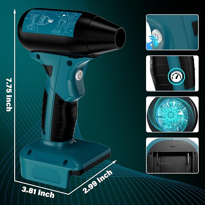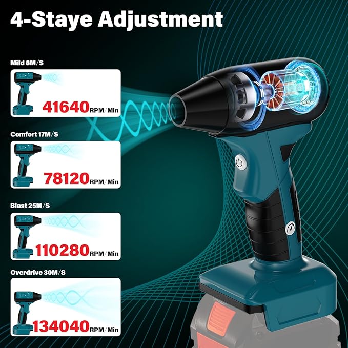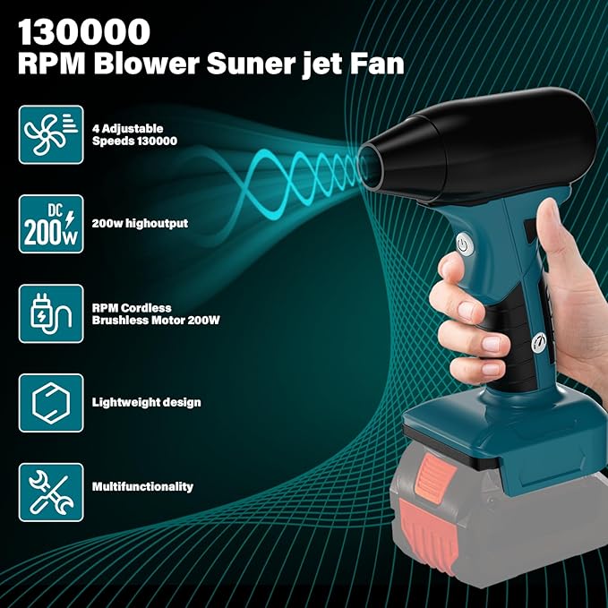 Suflanta electrica de aer comprimat, 18V, 4 viteze, 130000 RPM, 2 duze incluse, pentru curatare, fara acumulator