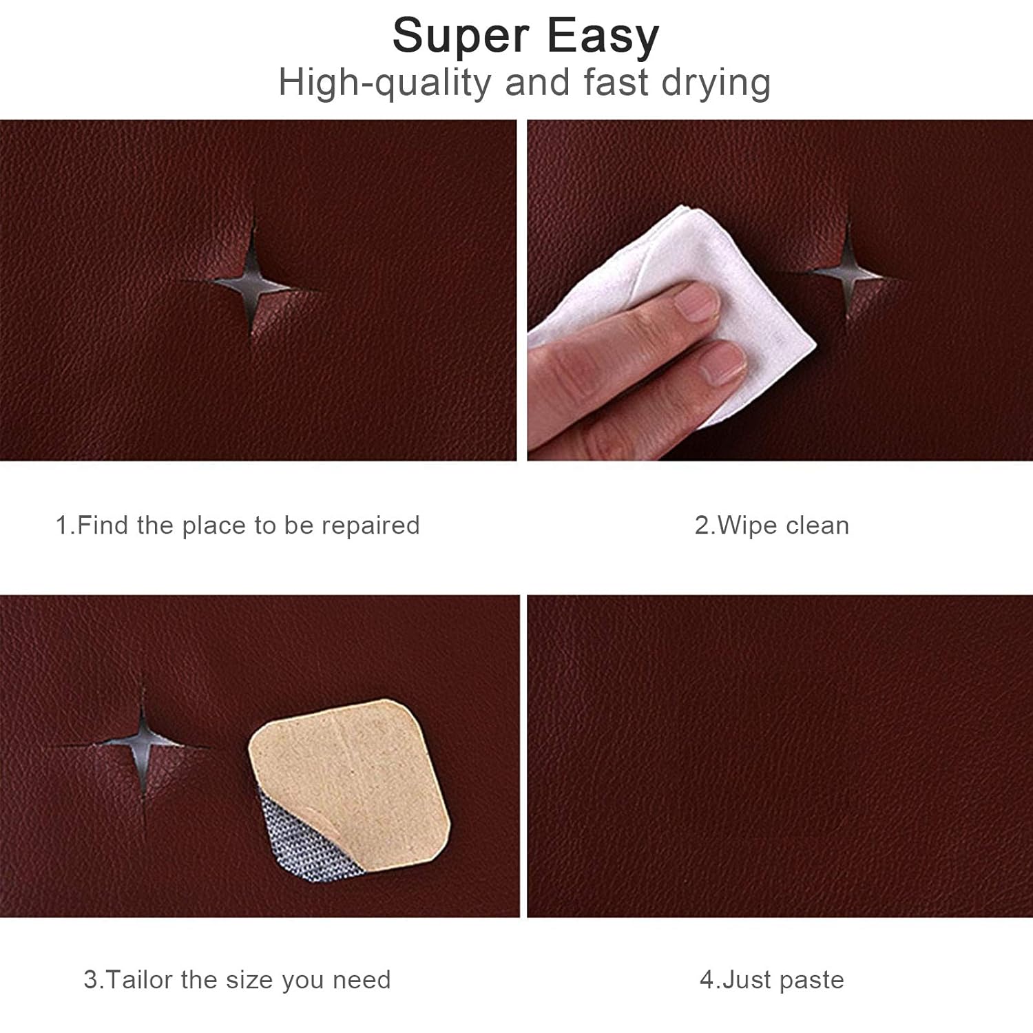 Produsele din piele se vor deteriora treptat, se vor imbatrani, se vor declina etc. in timpul utilizarii zilnice. Va rugam sa alegeti banda autoadeziva de reparare a pielii, care poate repara gaurile, zgarieturile, rupturile, arsurile articolelor cu aspect din piele. Banda noastra de reparatii poate fi folosita pe piele si vinil. canapele, canapele, scaun, scaun de masina, genti, poseta, cizme, jacheta, curele, bagaje, cizme, scaune auto, manusi, scaune de motocicleta, sezlong, geanta de mana, scaun de camion, otoman si mobilier. Nu numai ca reduceti costul reparatiei, dar si reconditionati mobilierul, va permite sa aveti o experienta diferita