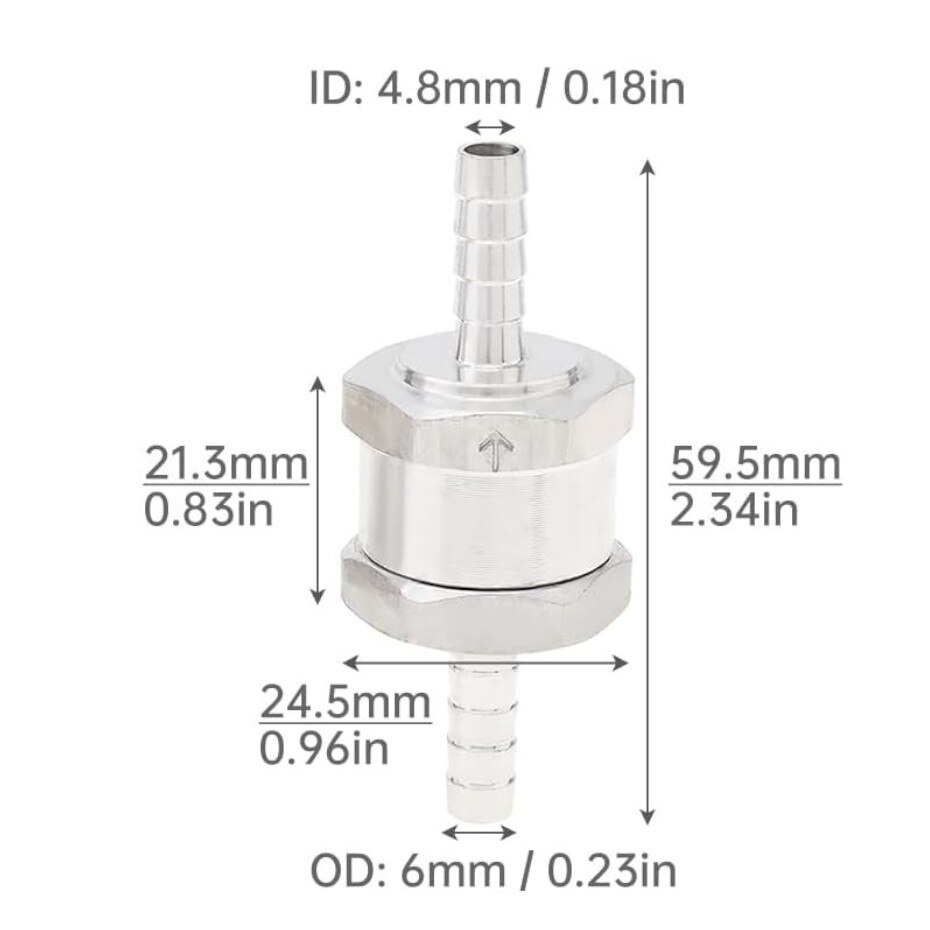Supapa FI 6 mm - 2 buc, UNISENS, apare sageata cu indicarea sensului, pentru utilaje agricole, compatibila motorina sau benzina