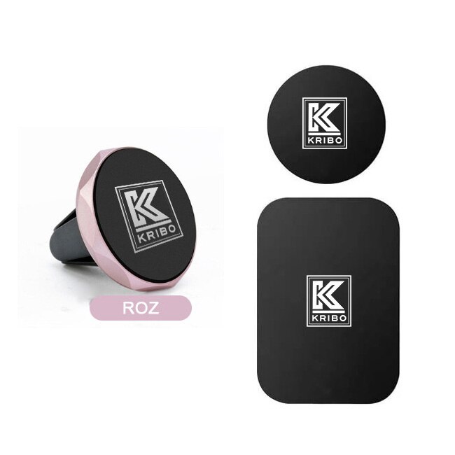 Suport auto pentru telefon Kribo Magnetic Air Vent, Prindere la sistemul de ventilatie, cu 2 placute metalice incluse, Rose
