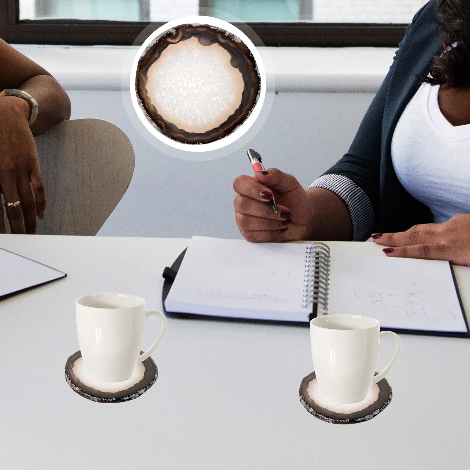 Suport bauturi din agate, dimensiune 8x8cm, model aleatoriu, set de 2 bucati