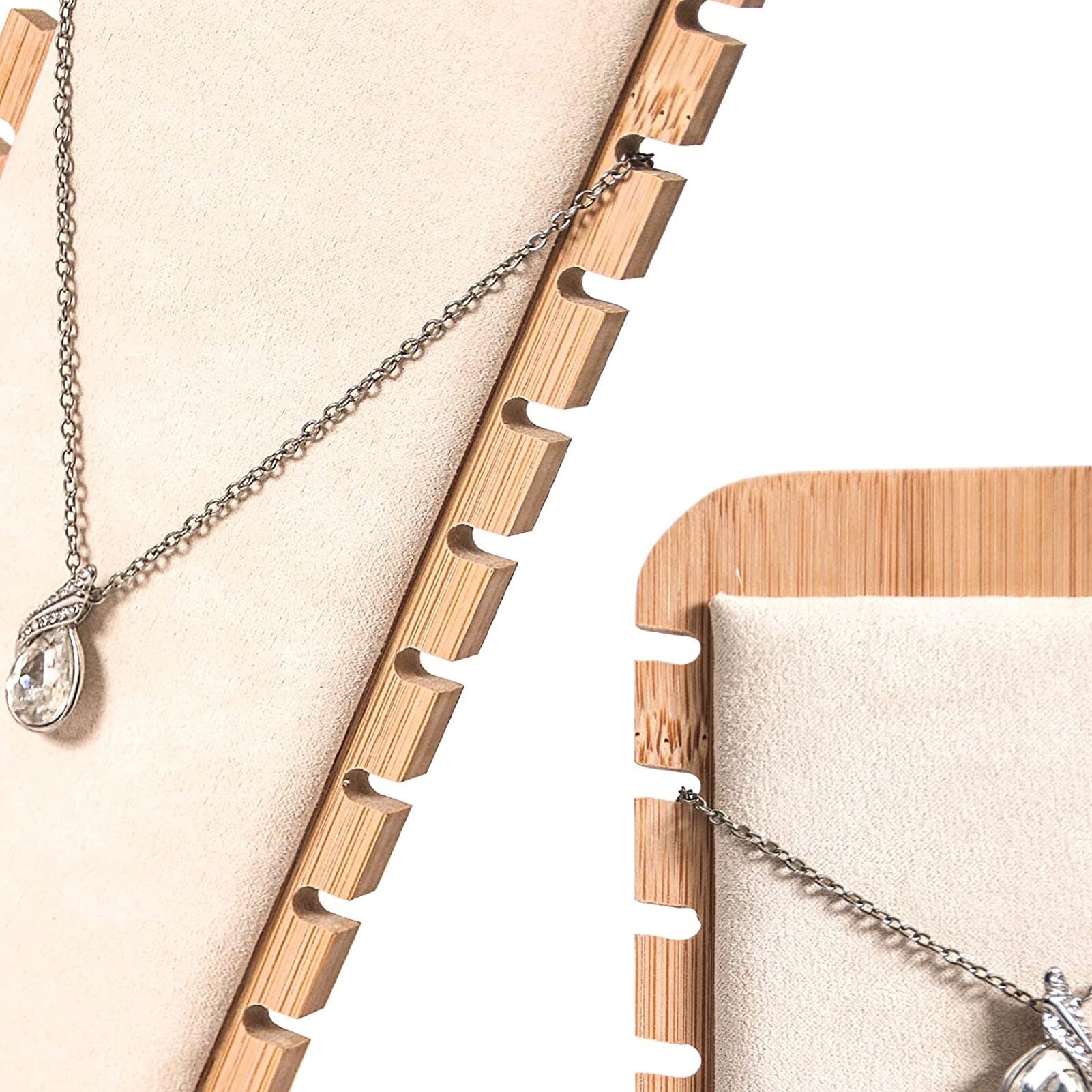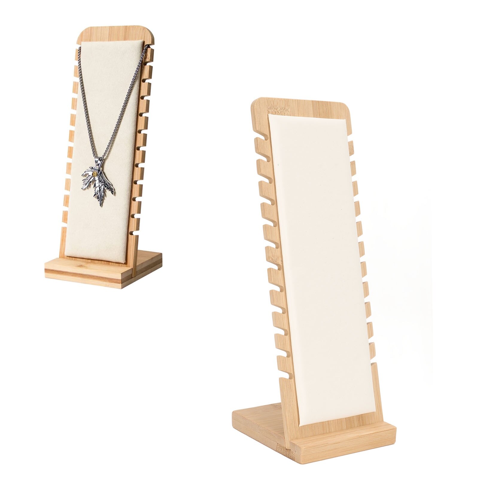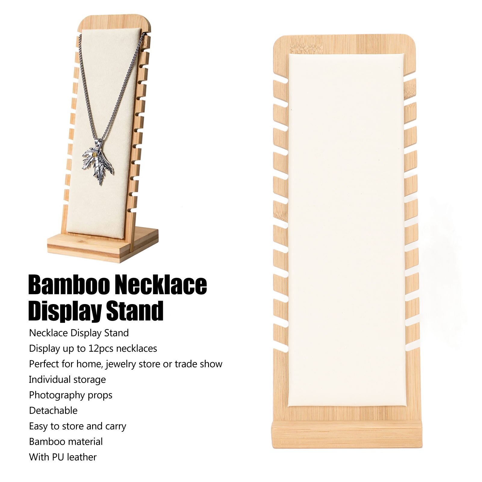 Suport bijuterii din bambus pentru 12 coliere, organizator alb pentru magazin de bijuterii