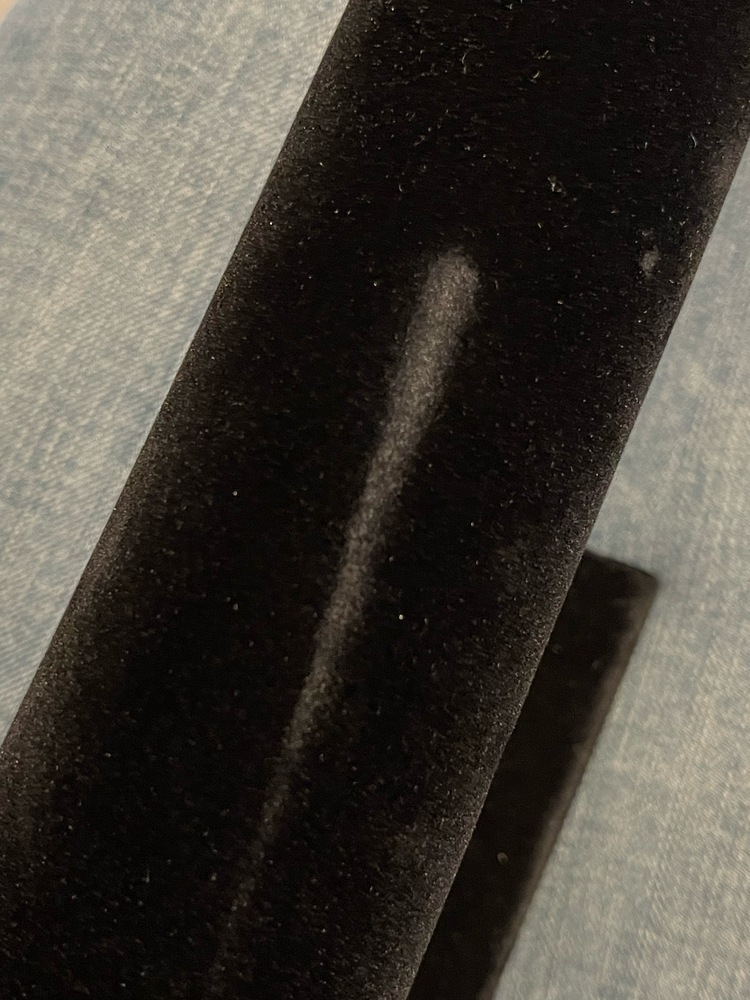 Suport bijuterii din catifea, cu picior, pentru barbati, ceasuri si lantisoare, cilindric, negru, 23.5 cm