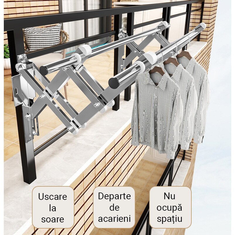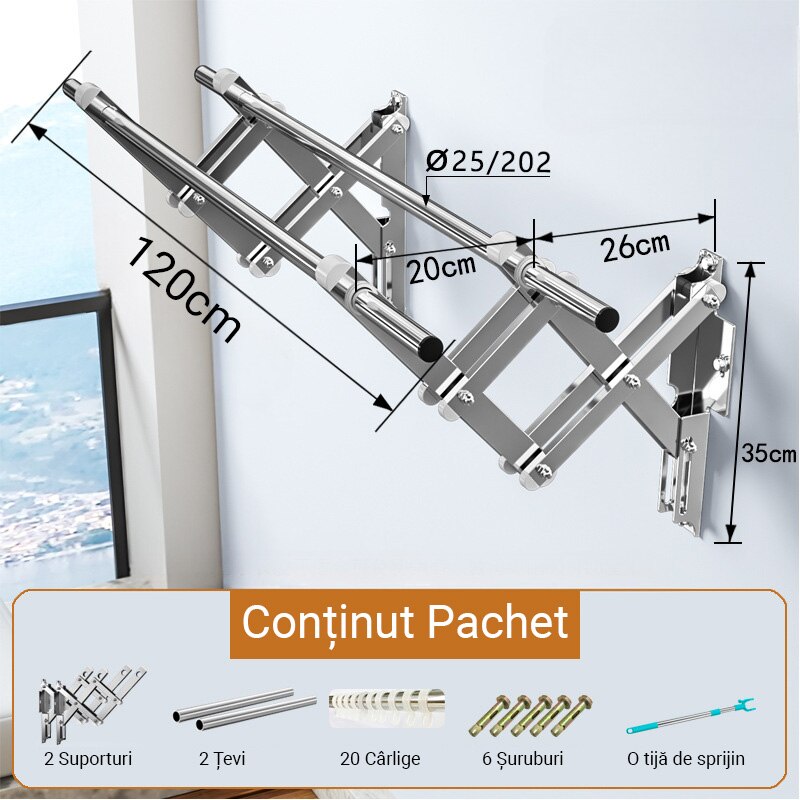 Suport de uscare din otel inoxidabil de uz casnic pliabil, extensibil, pentru aerisire rufe, de montat pe perete, design push-pull, economiseste spatiu, capacitate mare