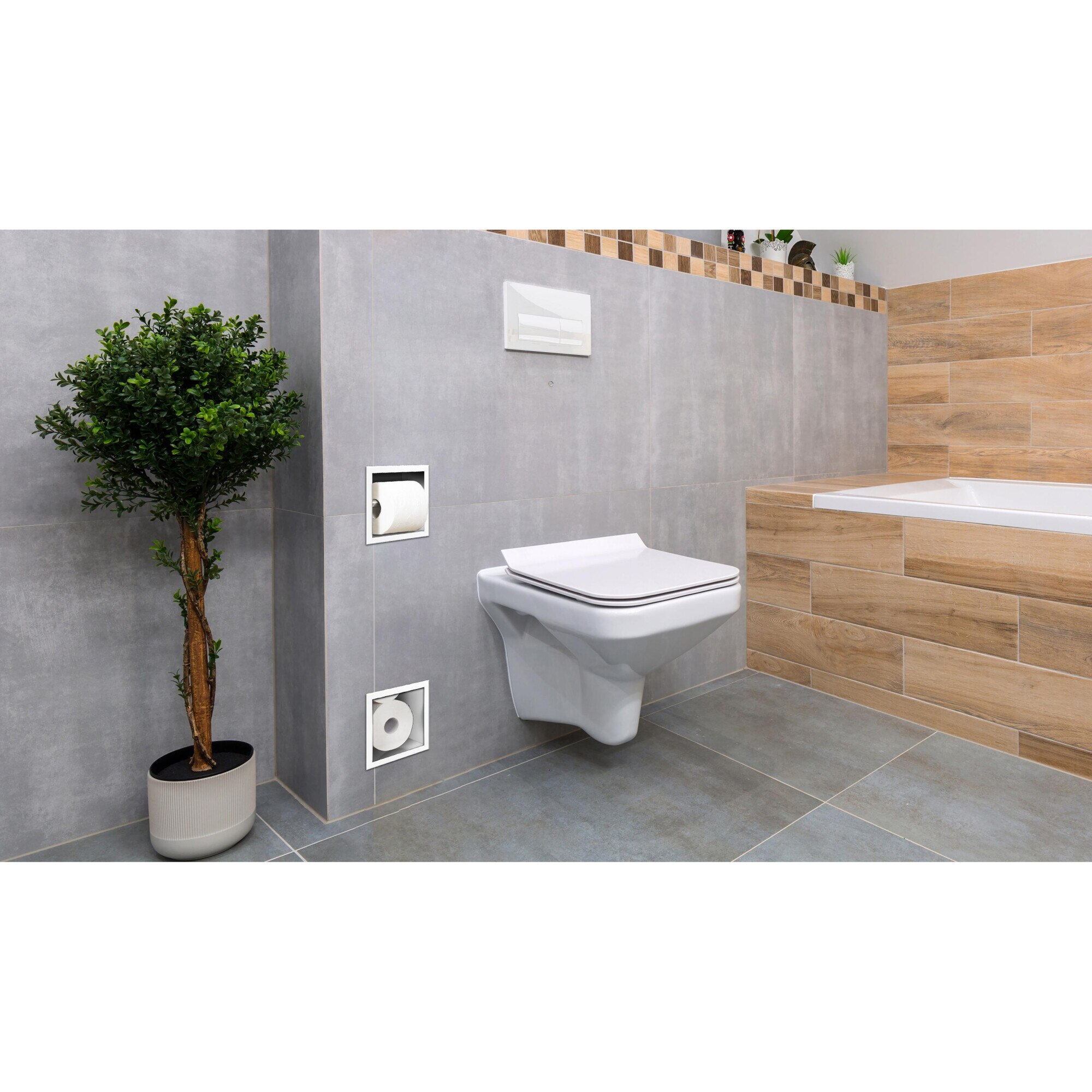 Suport incastrat hartie igienica Balneo Wall-Box Paper 2, Cu raft suplimentar alimentare hartie, Inox, Alb