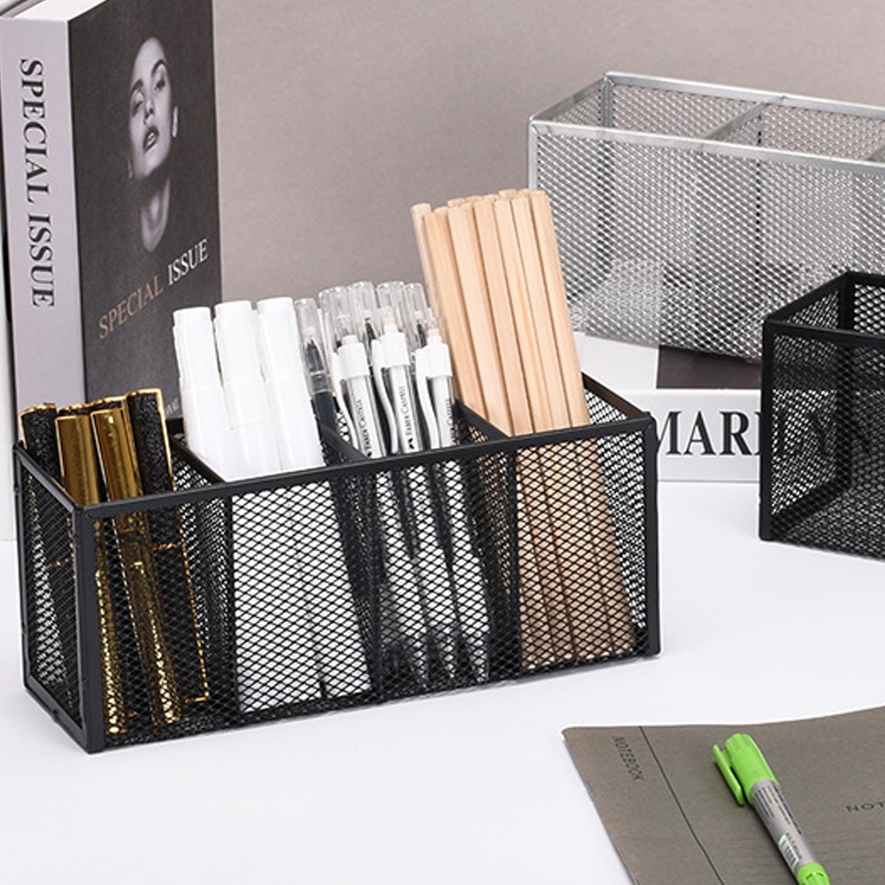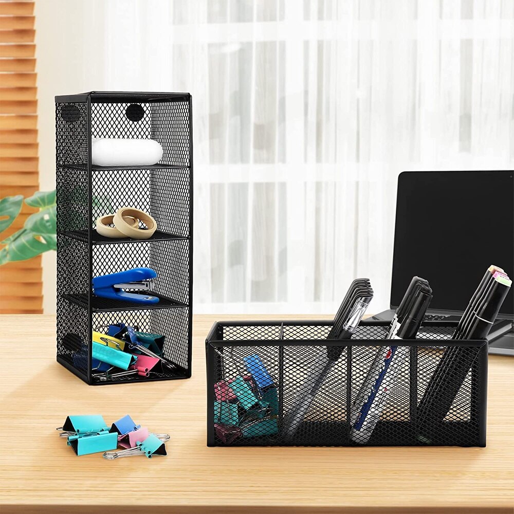 Suport instrumente de scris, Tovbmup, 4 compartimente, negru, 22.5x9.5x8cm