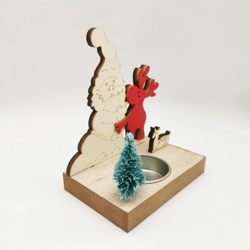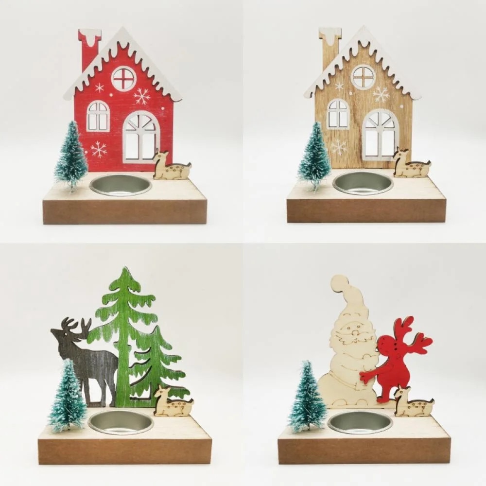 Suport lumanari din lemn de Craciun, 4 stiluri, casa colorata, ren, 13.3x10.3x6.8cm