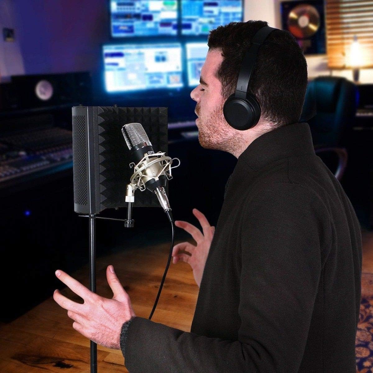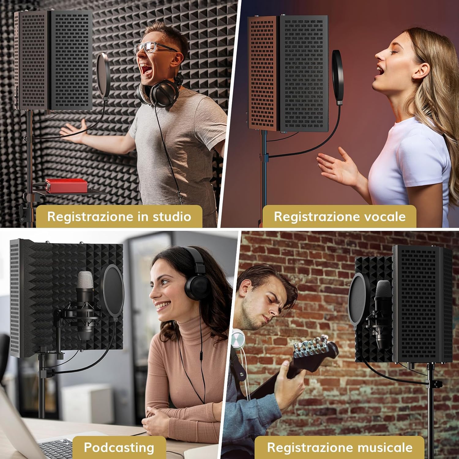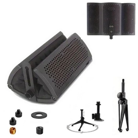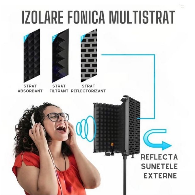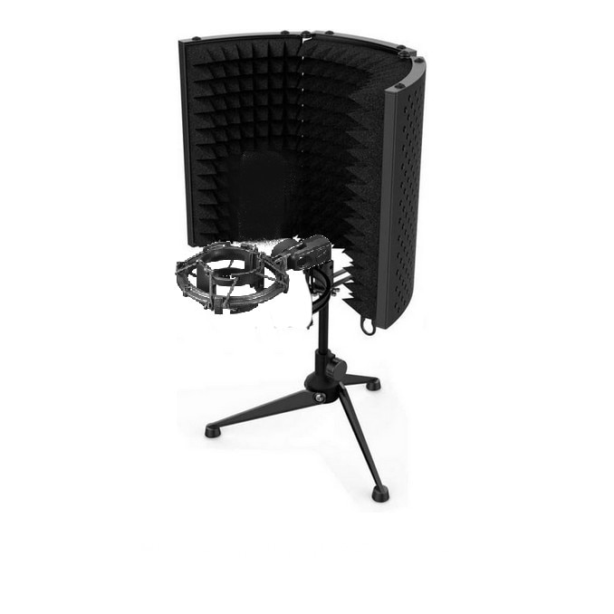 Suport microfon SkyTechs® trepied ecran scut de Izolare zgomote 3 panouri metal + suport anti-soc inclus