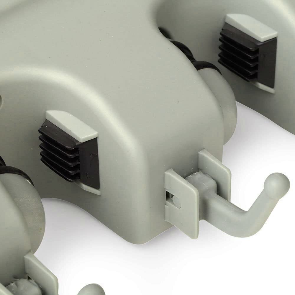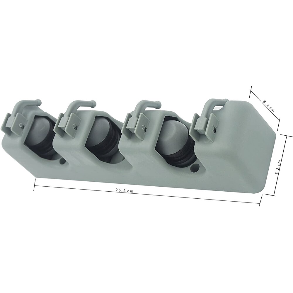Suport multifunctional de perete pentru maturi si mop, awwaline®, 3 spatii pentru unelte si 4 cuiere, sistem ingenios de agatare