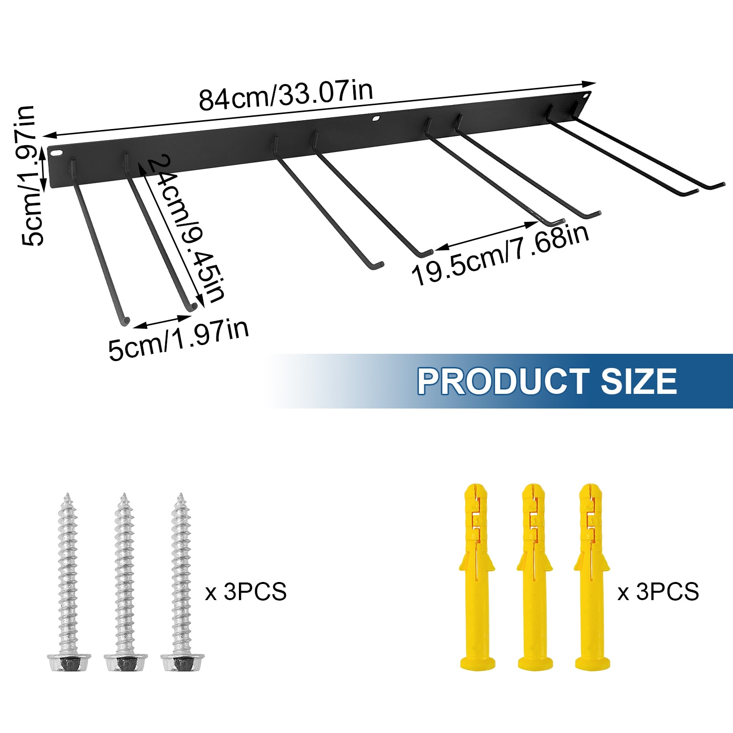 Suport multifunctional pentru unelte de gradina, gxwcyi, negru, 84x24x5cm, montare pe perete
