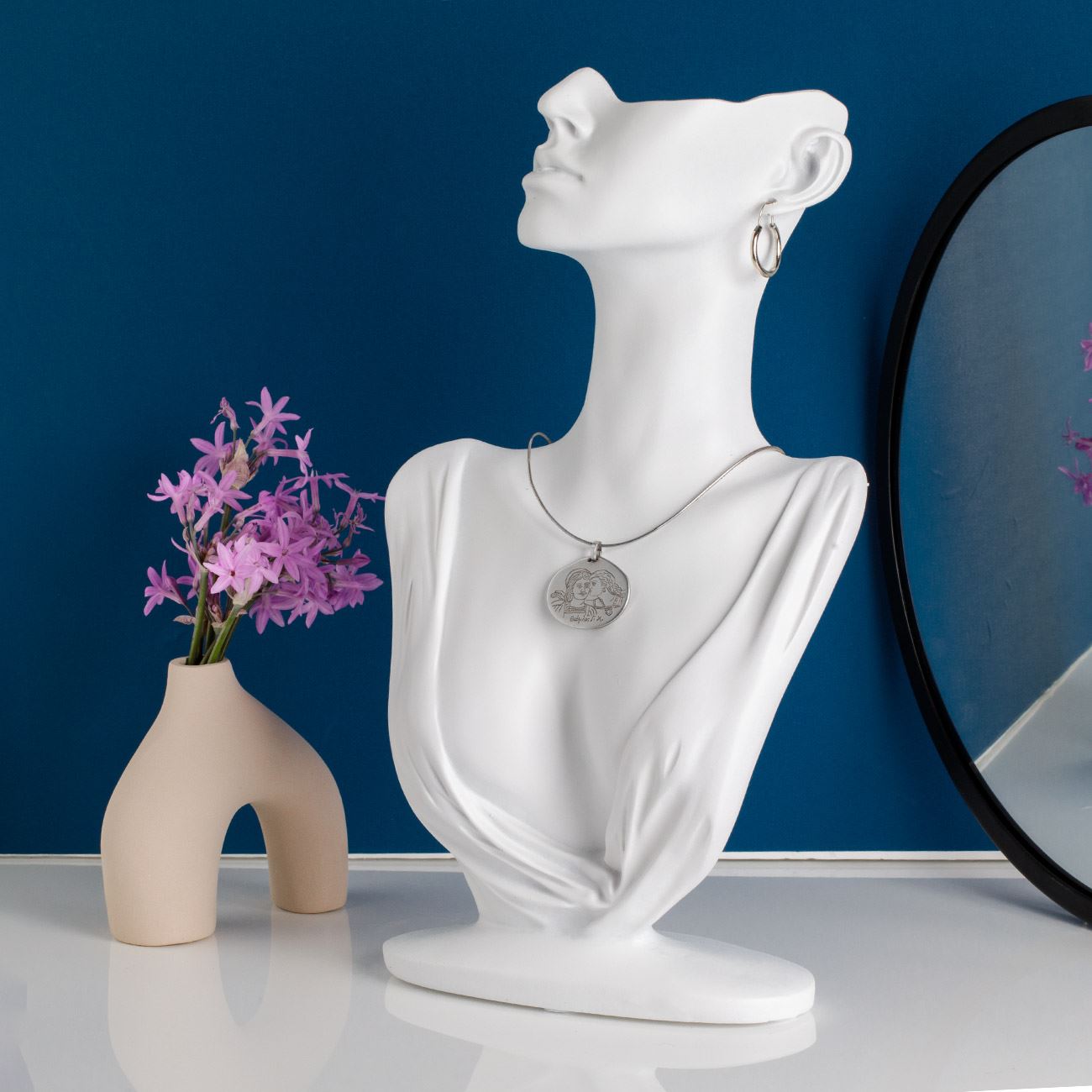 Suport organizator bijuterii - bust alb de femeie 18x7x31.5cm