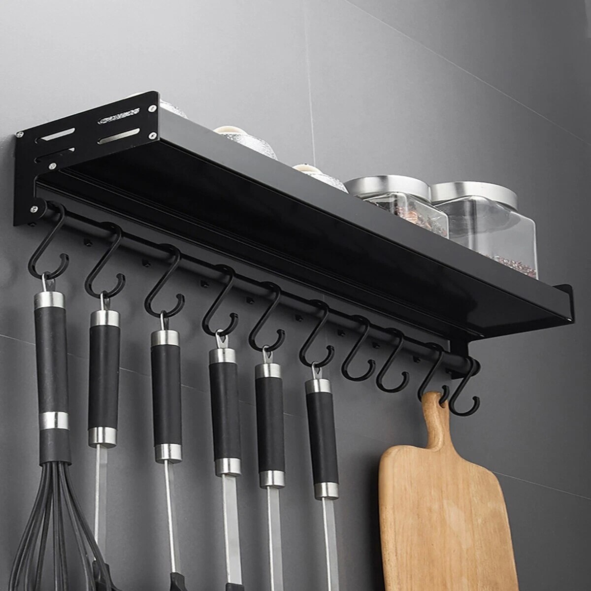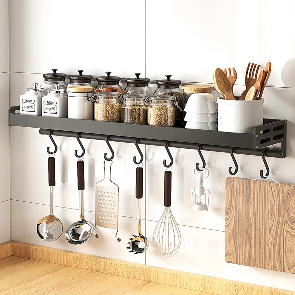 Suport pentru condimente, raft de bucatarie, raft de perete pentru condimente, agatat cu carlige, raft de perete fara gaurire