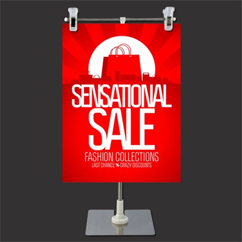 Suport poster ajustabil din otel inoxidabil, Fokelyi, inaltime ajustabila 20x90cm, cu clips, alb, set 2 clipsuri