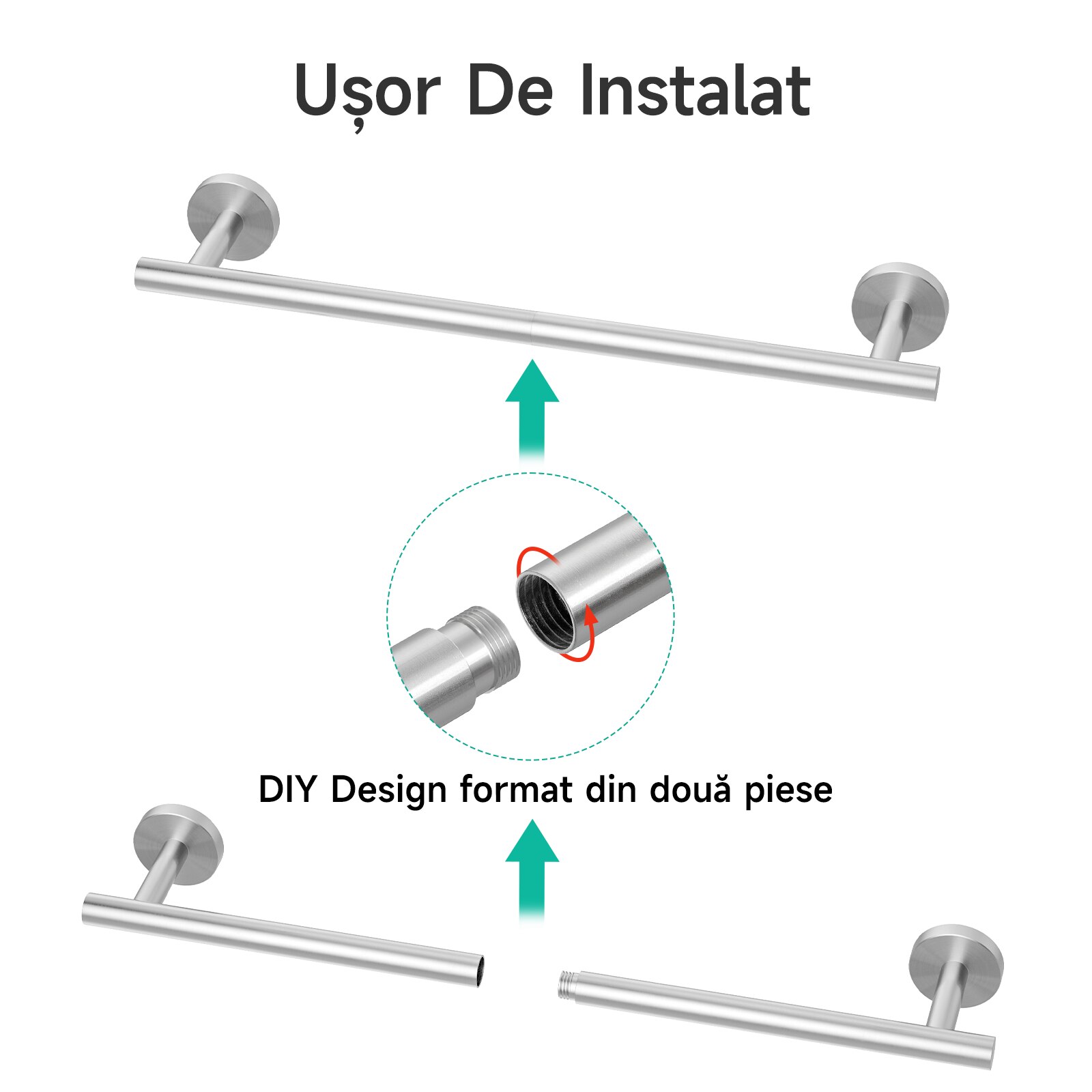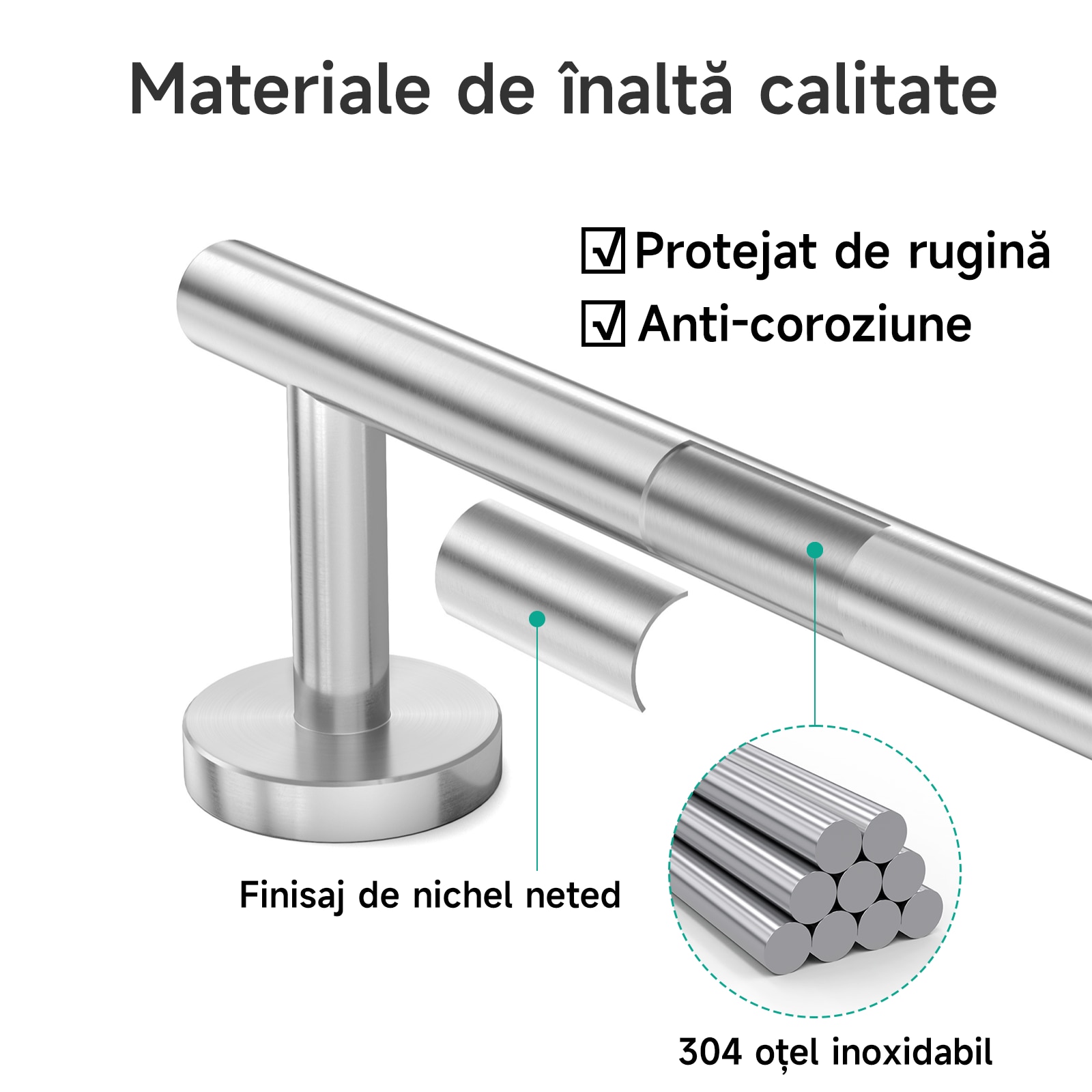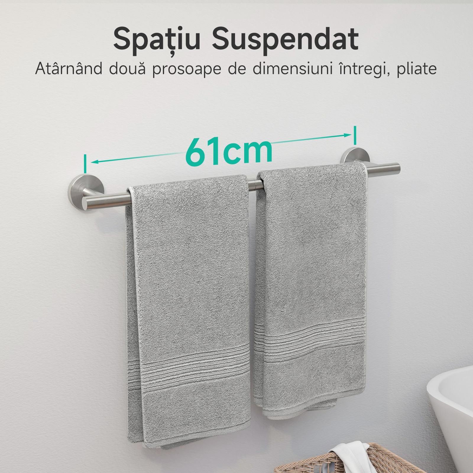 Suport prosoape de baie, 24 inch, inox, design modern, montare pe perete