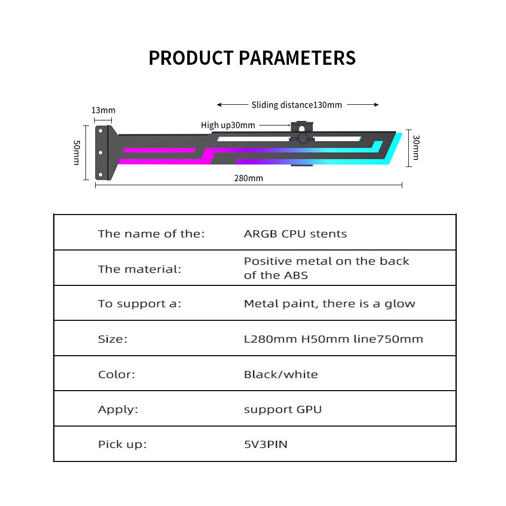 | Altele | Suport orizontal pentru placile video Slider ajustabil bidirectioanal Previne indoirea placii video si protejeaza placa de baza Constructie solida din otel de intalta calitate Sustine si protejeaza placa video de torsiuni si indoire Iluminare ARGB |