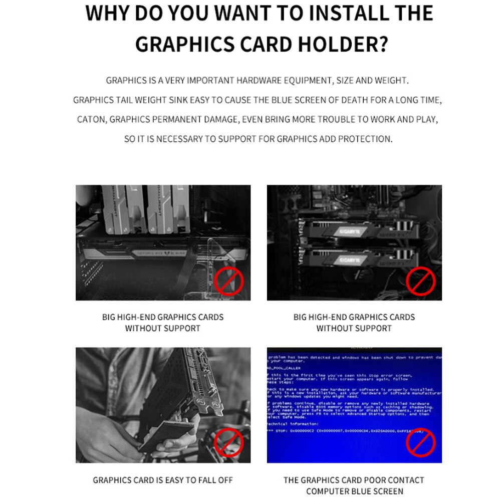 Suport Stand Placa Video, BOMSTOM, Protejeaza placa de baza, Reglabil Bidirectional, 5V ARGB Sync, Iluminare RGB, Negru