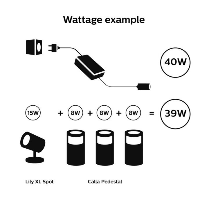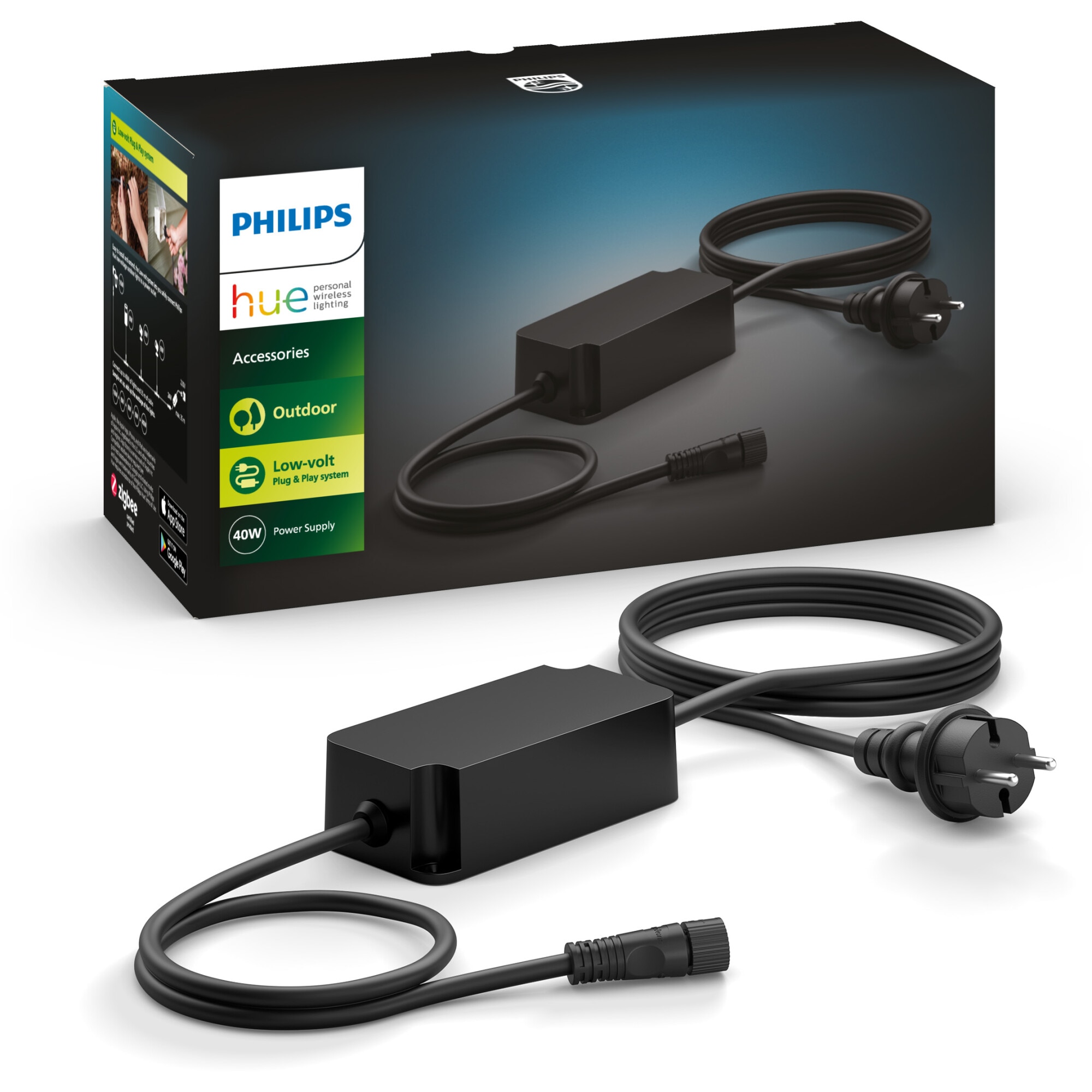 Sursa de alimentare Philips Hue, pentru exterior, 40W, 240V, IP67, cablu electric 1.5m, cablu 24V 0.6m, Negru