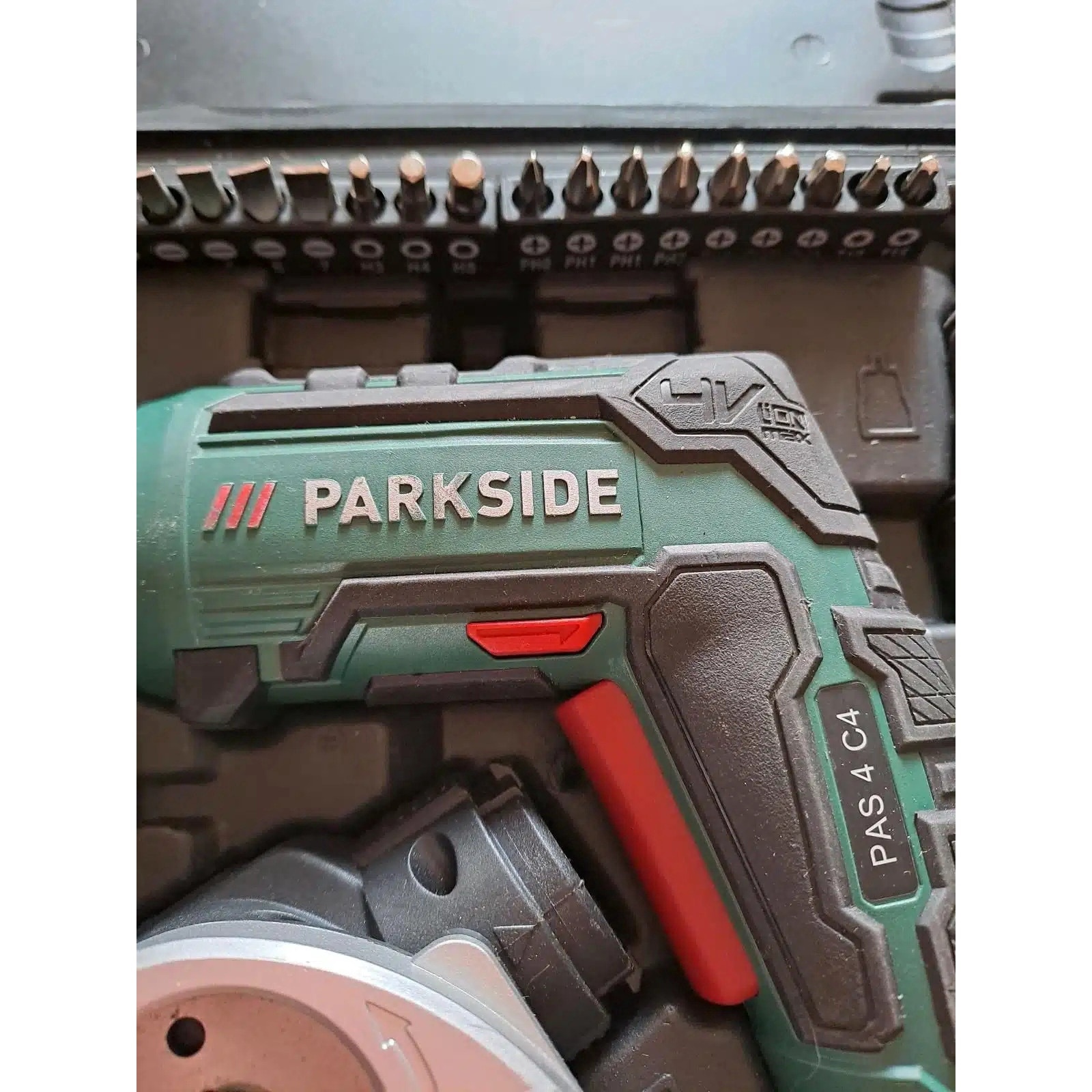 Surubelnita Electrica Parkside Multifunctionala cu Acumulator si Accesorii incluse Adaptor de taiere, de Cuplu, Excentric si Unghiular, 26Biti, Servieta Depozitare si Transport