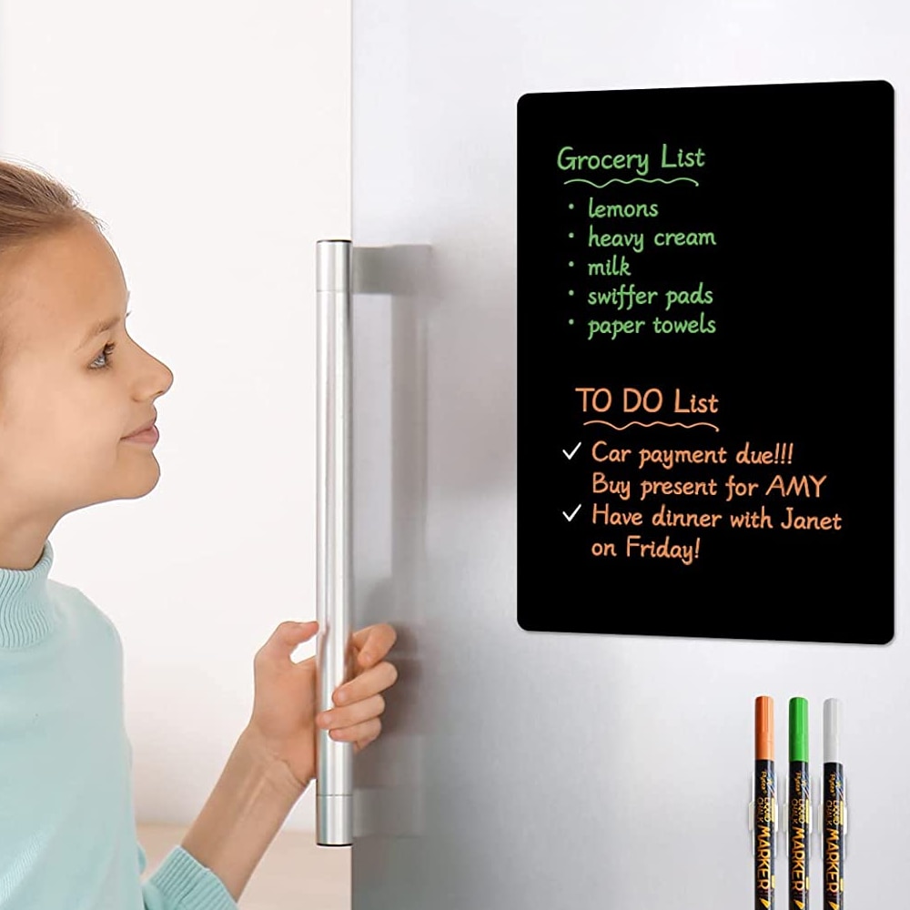 Tabla magnetica neagra Tovbmup, organizator bucatarie, rezistenta la pete, cu markere, pentru frigider