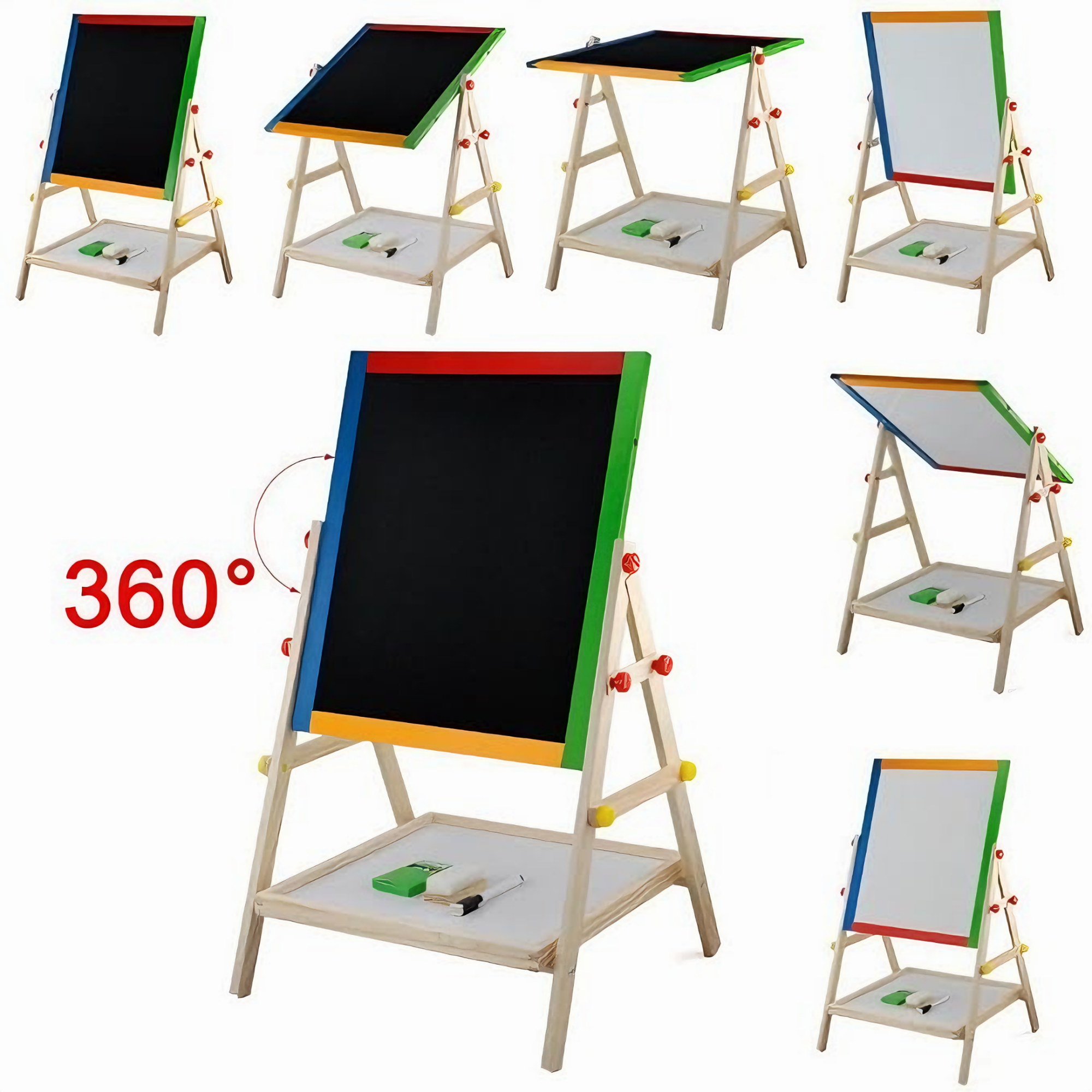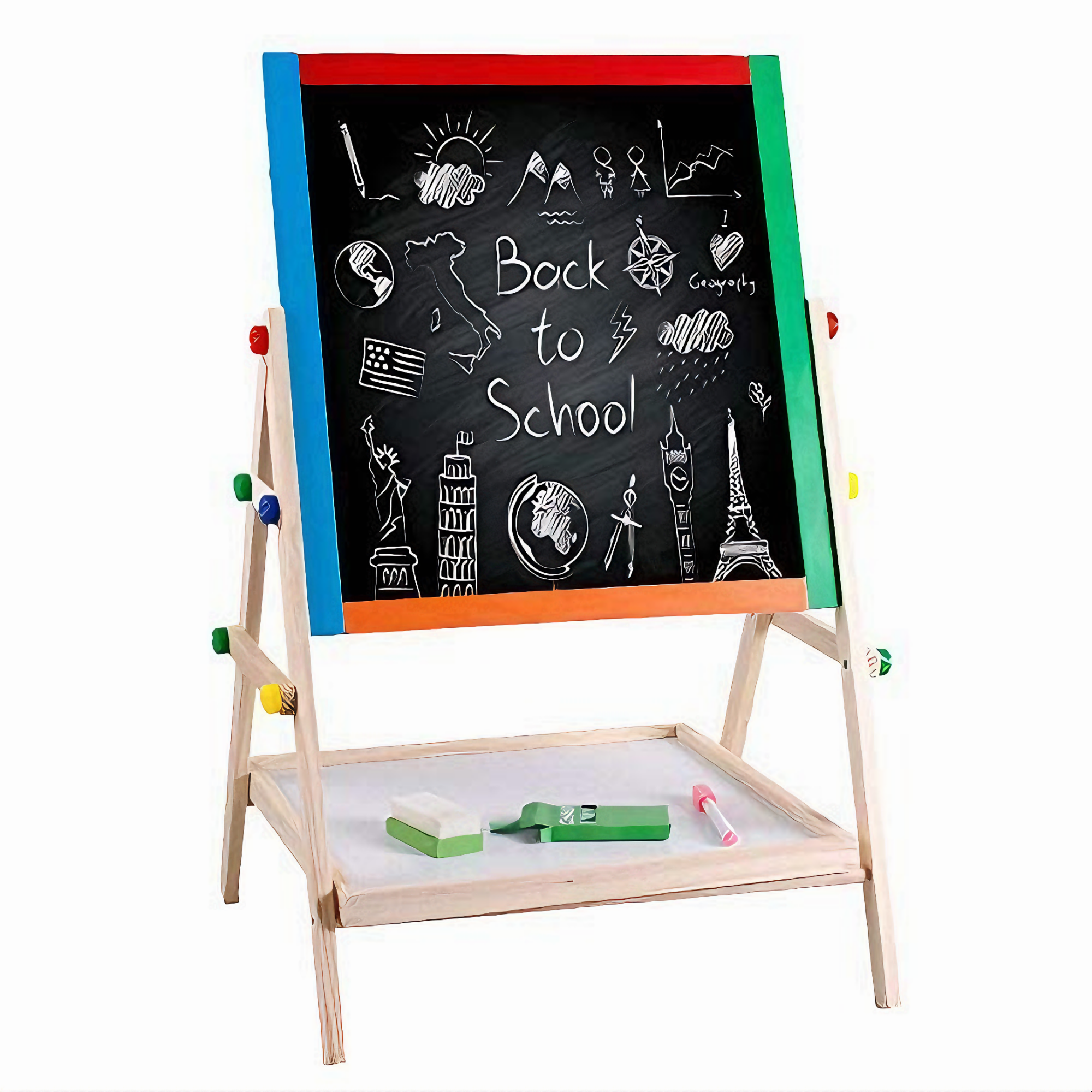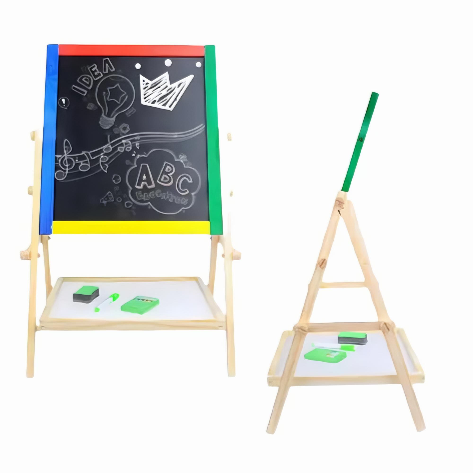 Tabla Rotativa Multifunctionala VarioShop® 2 in 1 pentru Copii, Cu Fata Magnetica si de Creta, Set Complet cu Marker, Burete si Crete Colorate, Cadru din Lemn Ecologic - Perfecta pentru Desen, Scris, Dezvoltarea Creativitatii si Educatie Prescolara