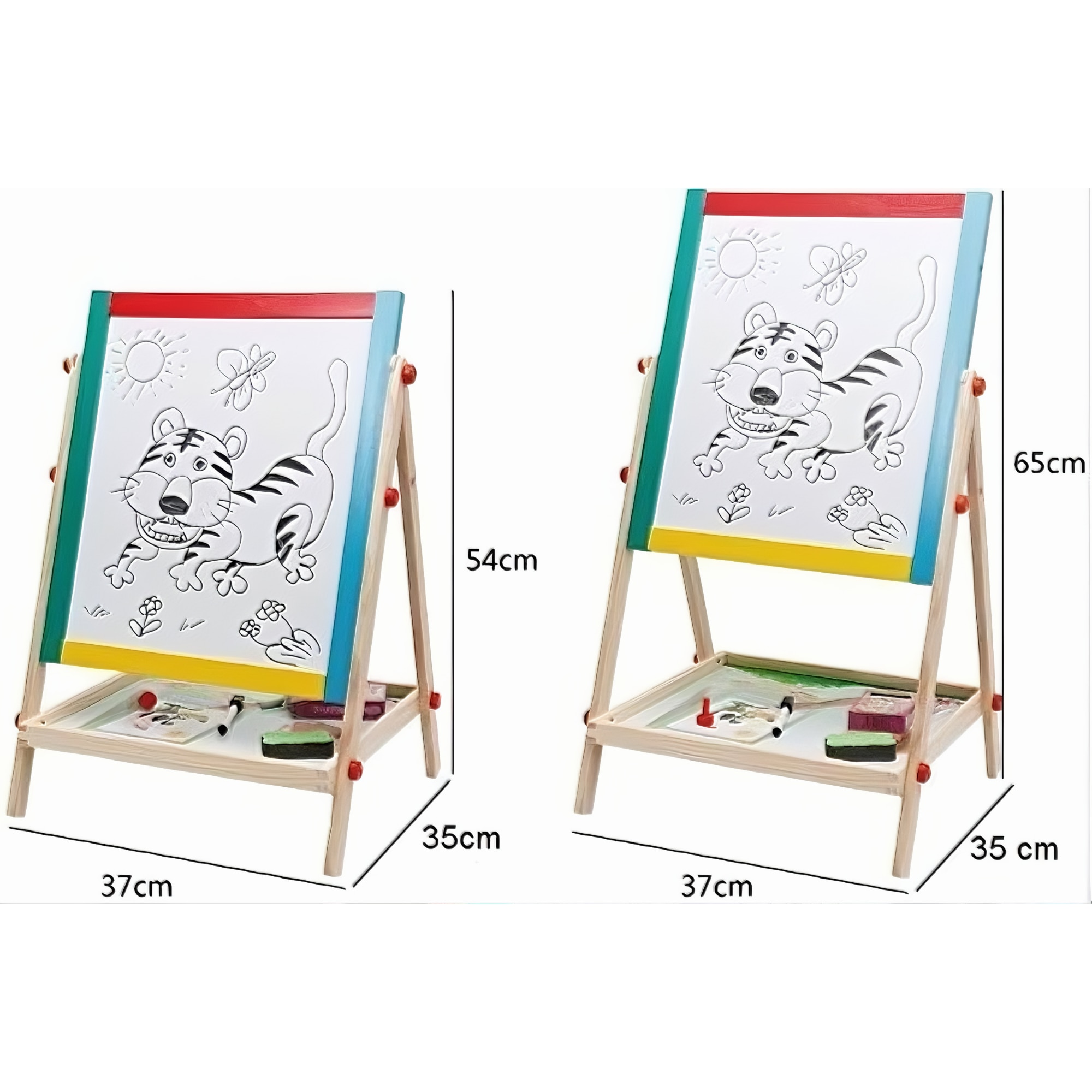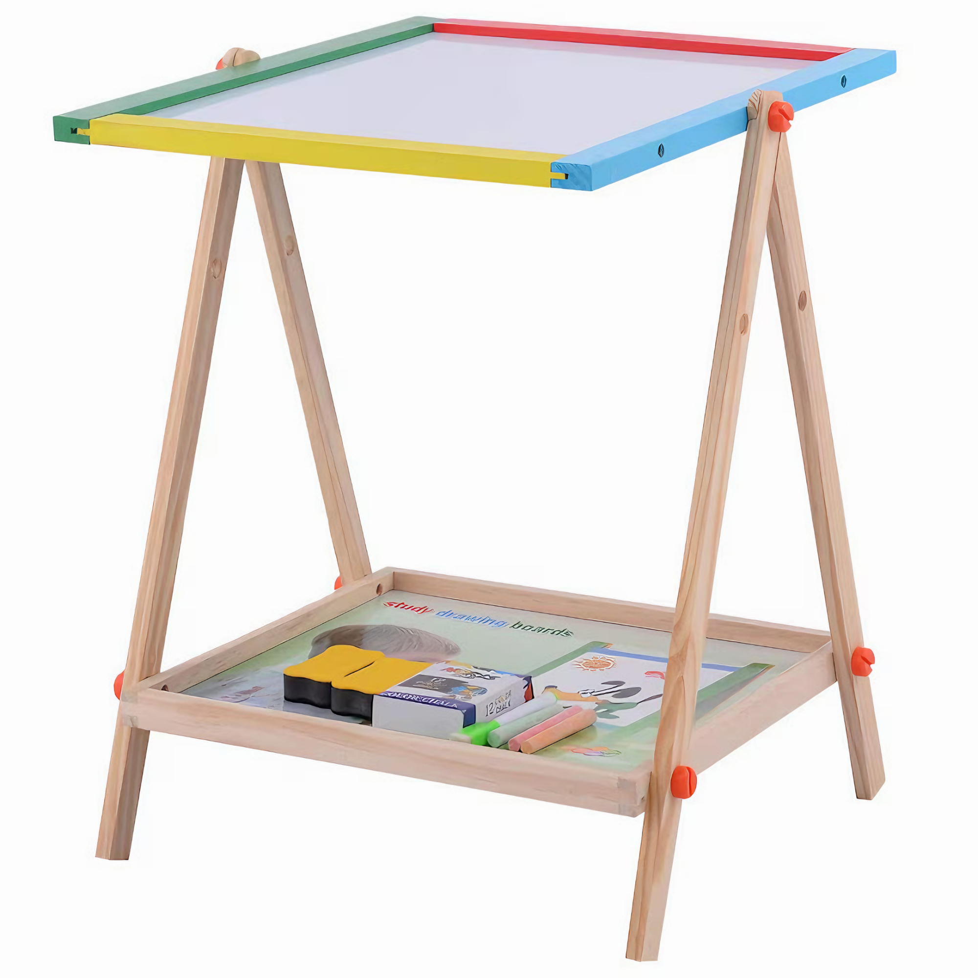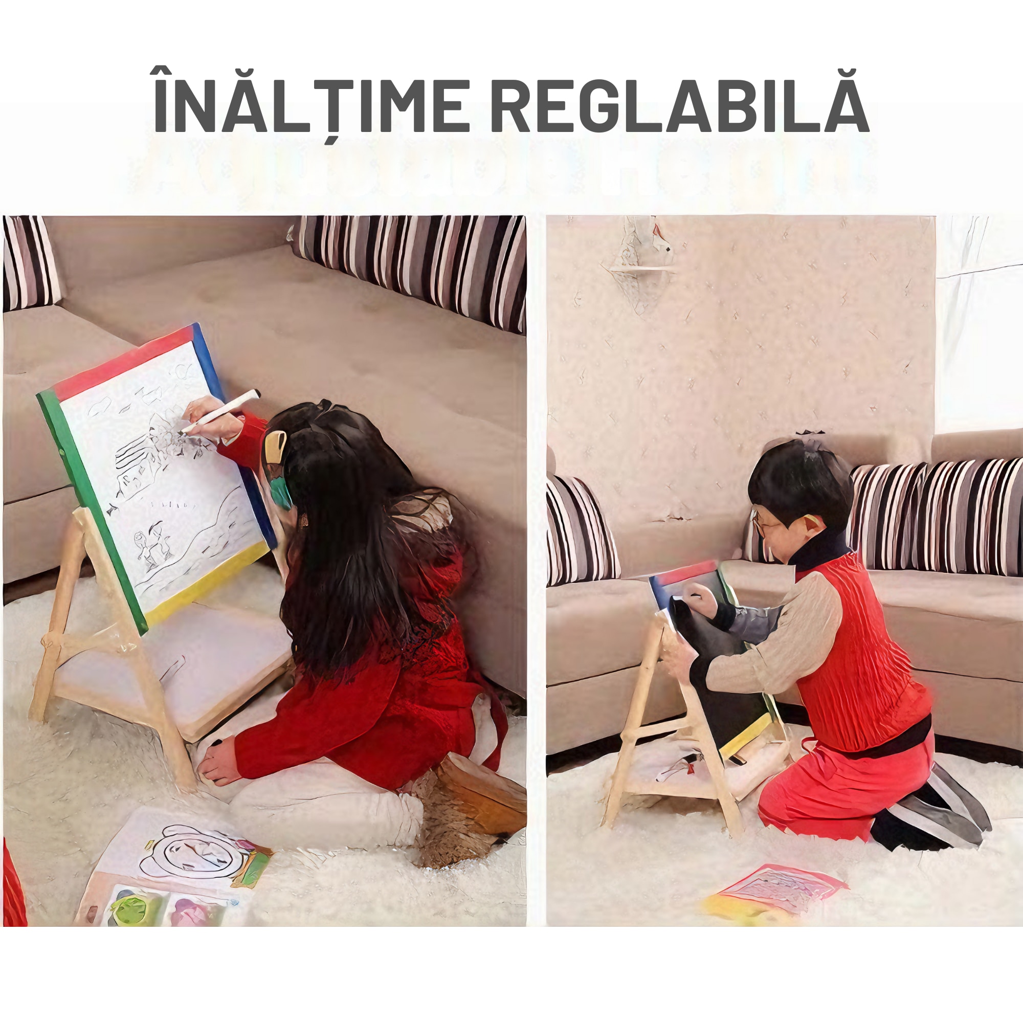 Tabla Rotativa Multifunctionala VarioShop® 2 in 1 pentru Copii, Cu Fata Magnetica si de Creta, Set Complet cu Marker, Burete si Crete Colorate, Cadru din Lemn Ecologic - Perfecta pentru Desen, Scris, Dezvoltarea Creativitatii si Educatie Prescolara