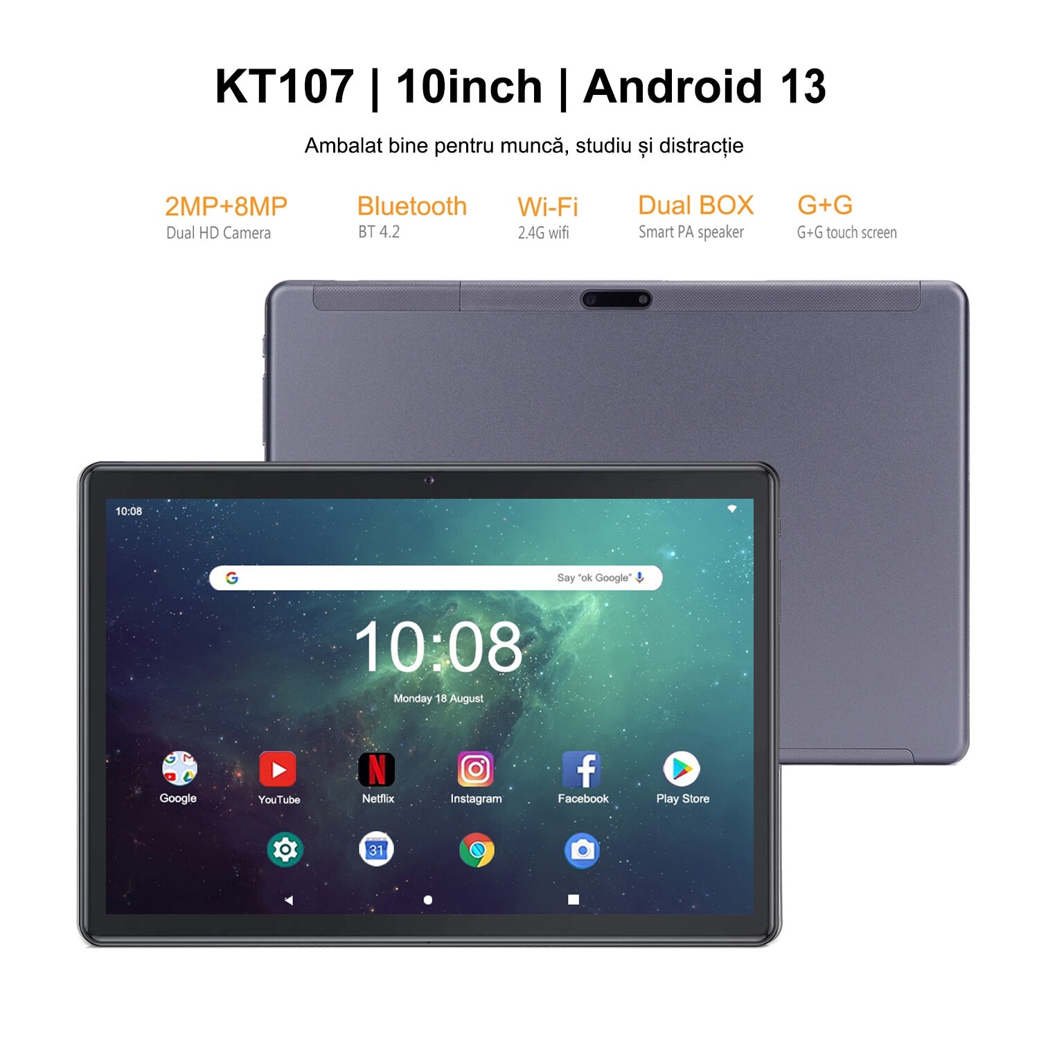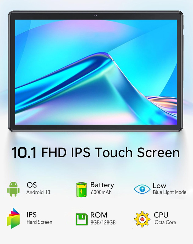 Tableta 10 inci, Android 13, 8GB RAM+ 128GB ROM, Camera dubla, Baterie de 6000mAh, Negru
