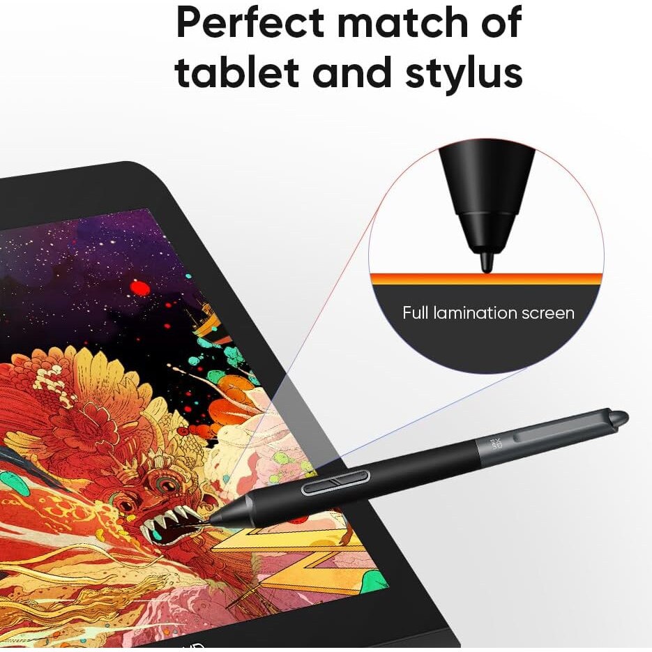 Ecranul si panoul de afisare sunt laminate fara intreruperi, eliminand erorile de paralaxa dintre varful stiloului si cursor. Aceasta tehnologie asigura plasarea precisa a fiecarei trasaturi, oferind o experienta de desen fluida si naturala.