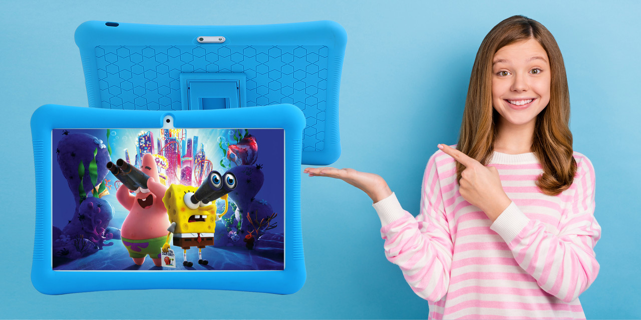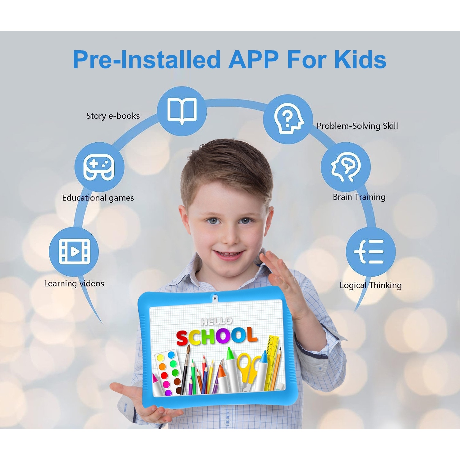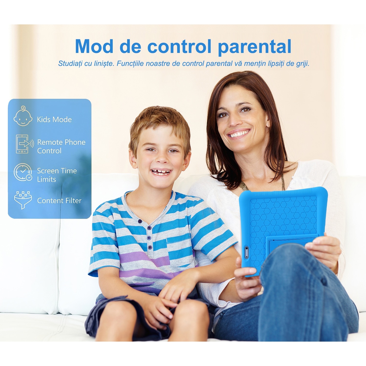 Tableta pentru copii de 10 inch, LULUGTI, Android 13, 6GB RAM, 128 GB ROM, ecran tactil IPS HD 1280x800, tableta cu control parental, software pentru copii preinstalat, WiFi, Bluetooth, Albastru