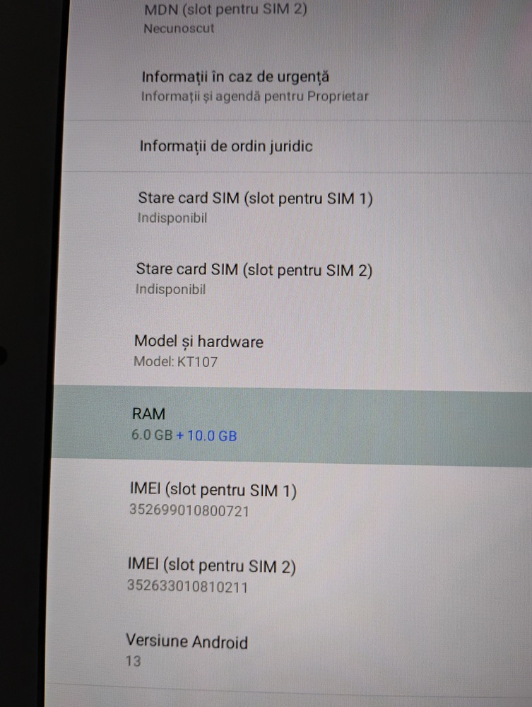 in ce priveste memoria ram, doar 6 gb sunt reali, nu 8, cum scrie in anunt. Poti sa folosesti 16 gb ram daca activezi optiunea "ram expand" din setari, si iti foloseste 10 gb din stocare pentru ram.