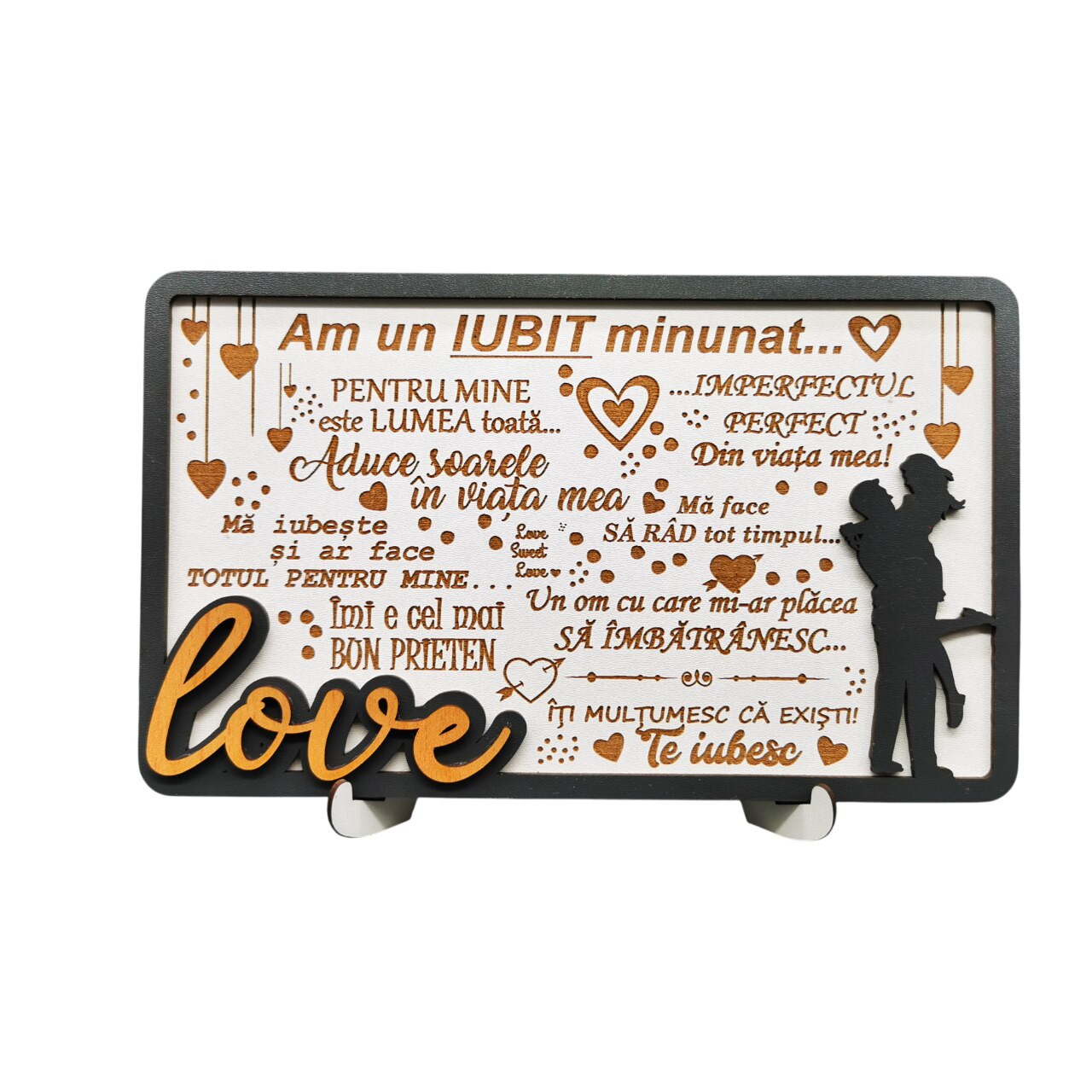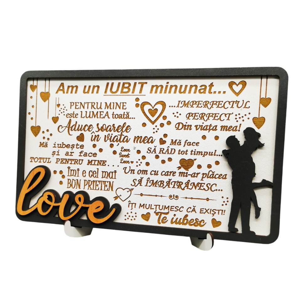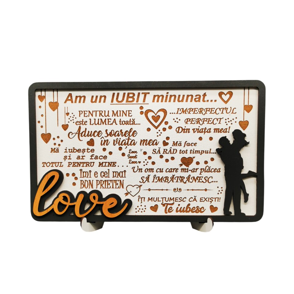 Tablou cadou pentru iubit de Ziua indragostitilor, Dragobete, Aniversare, Zi de nastere etc - Am un iubit minunat, Lemn, 25x15 cm