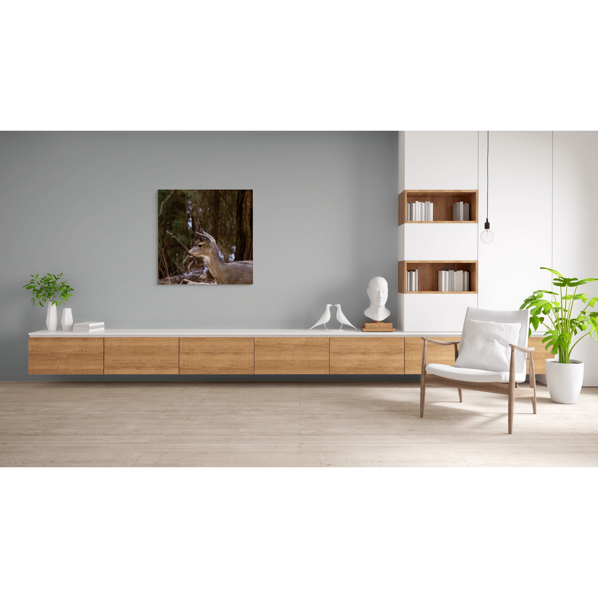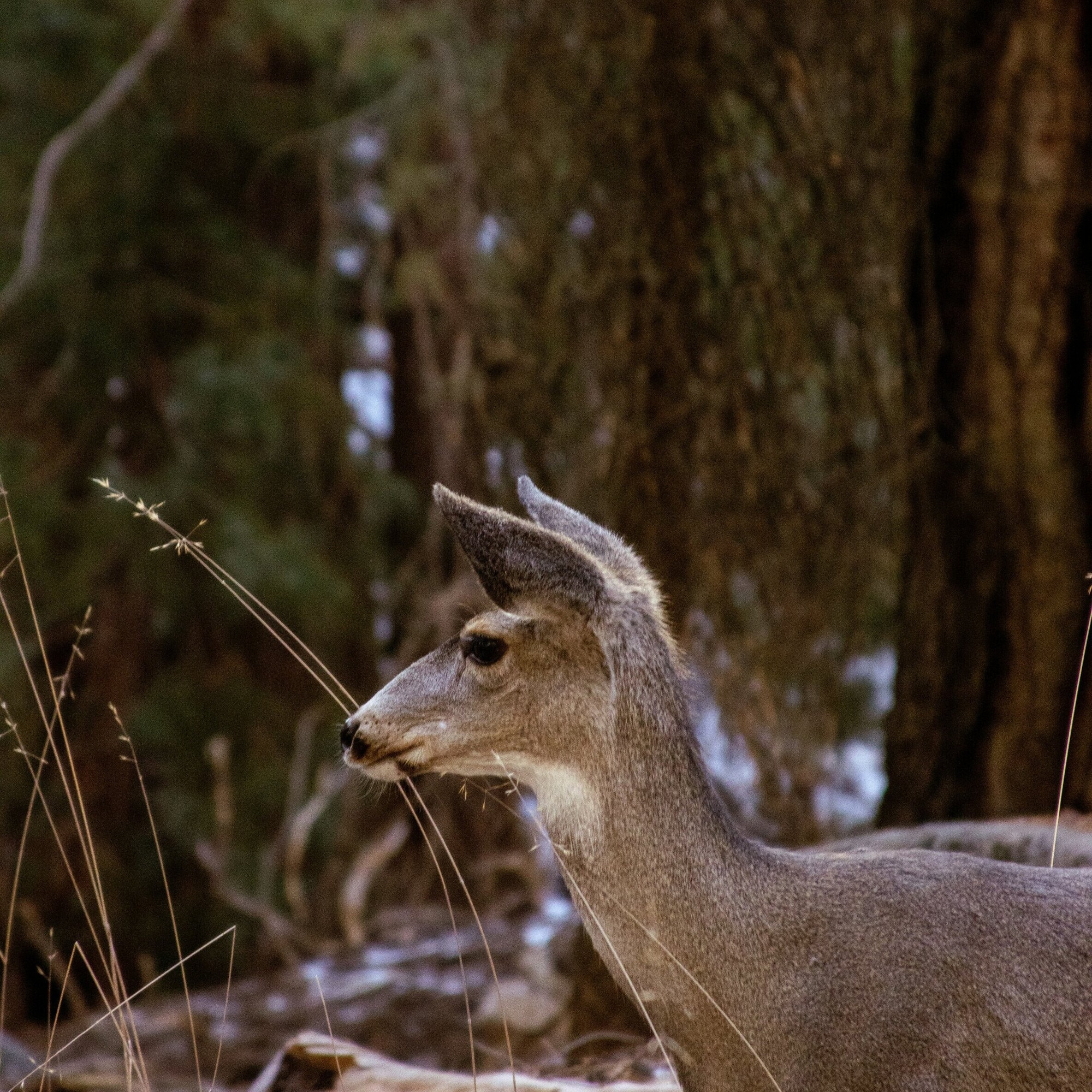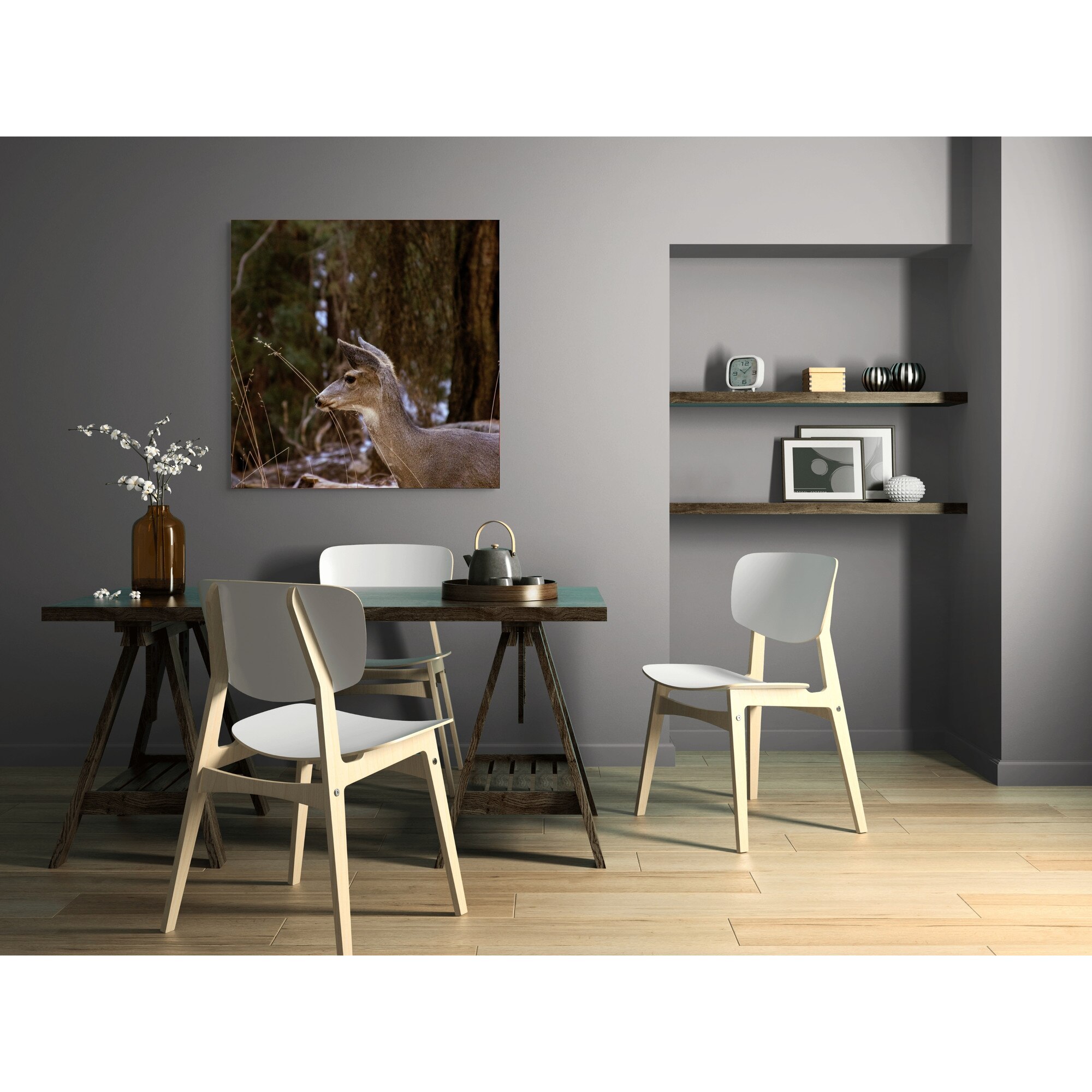 Tablou Canvas, "Caprioara printre copaci de iarna", Cerb, Padure, Natura, Blana, Vanatoare, Salbaticie, Pasnic, Tacut., 100 x 100cm