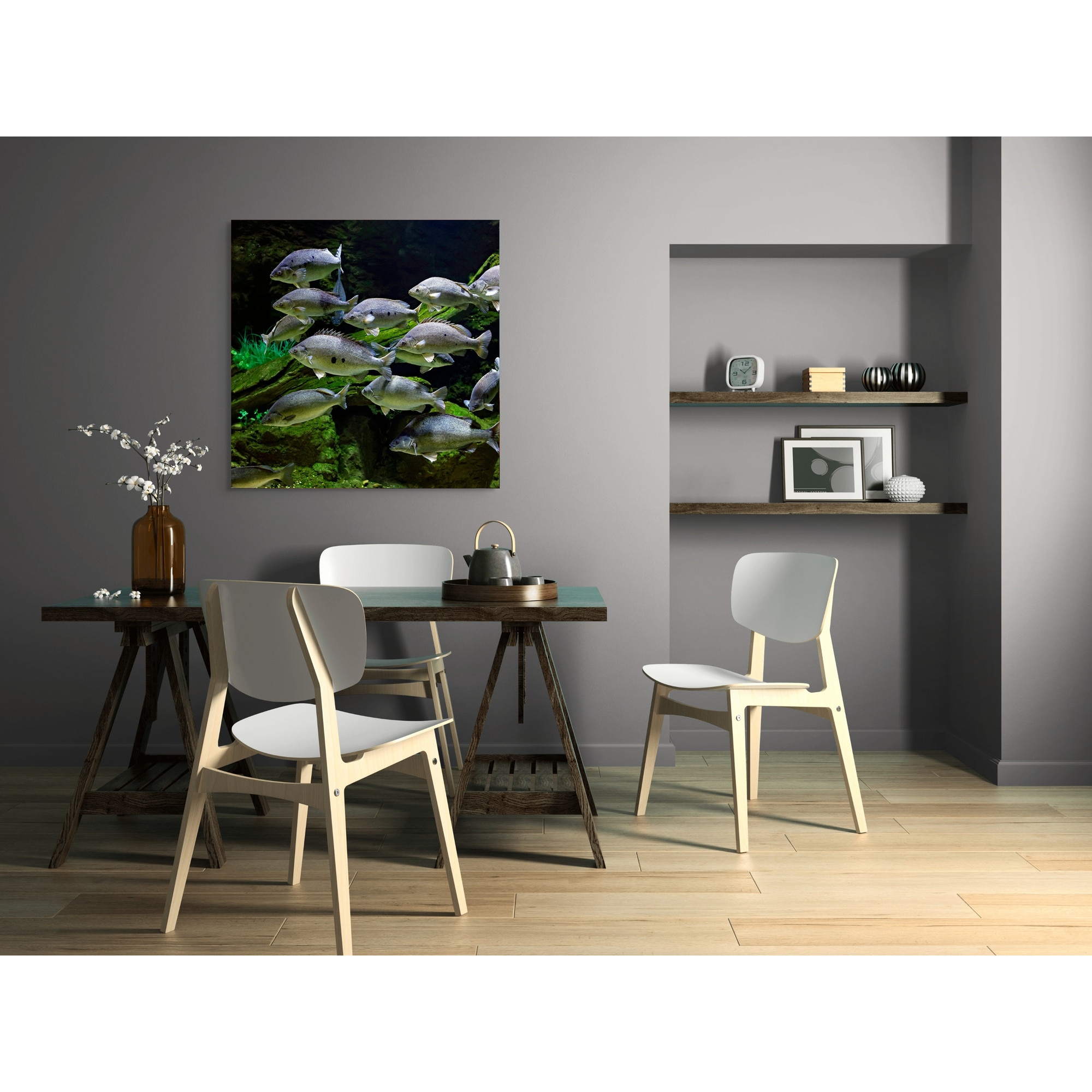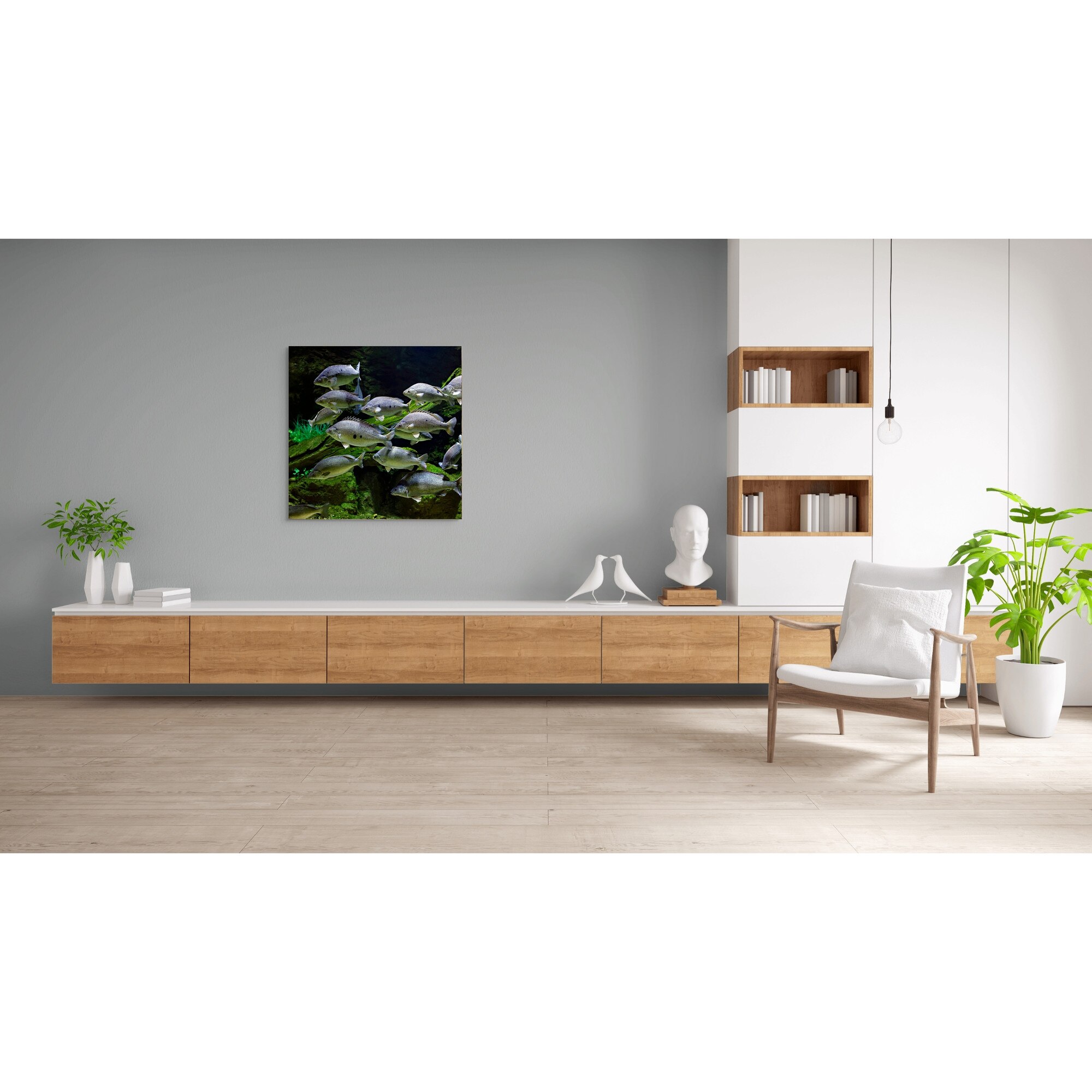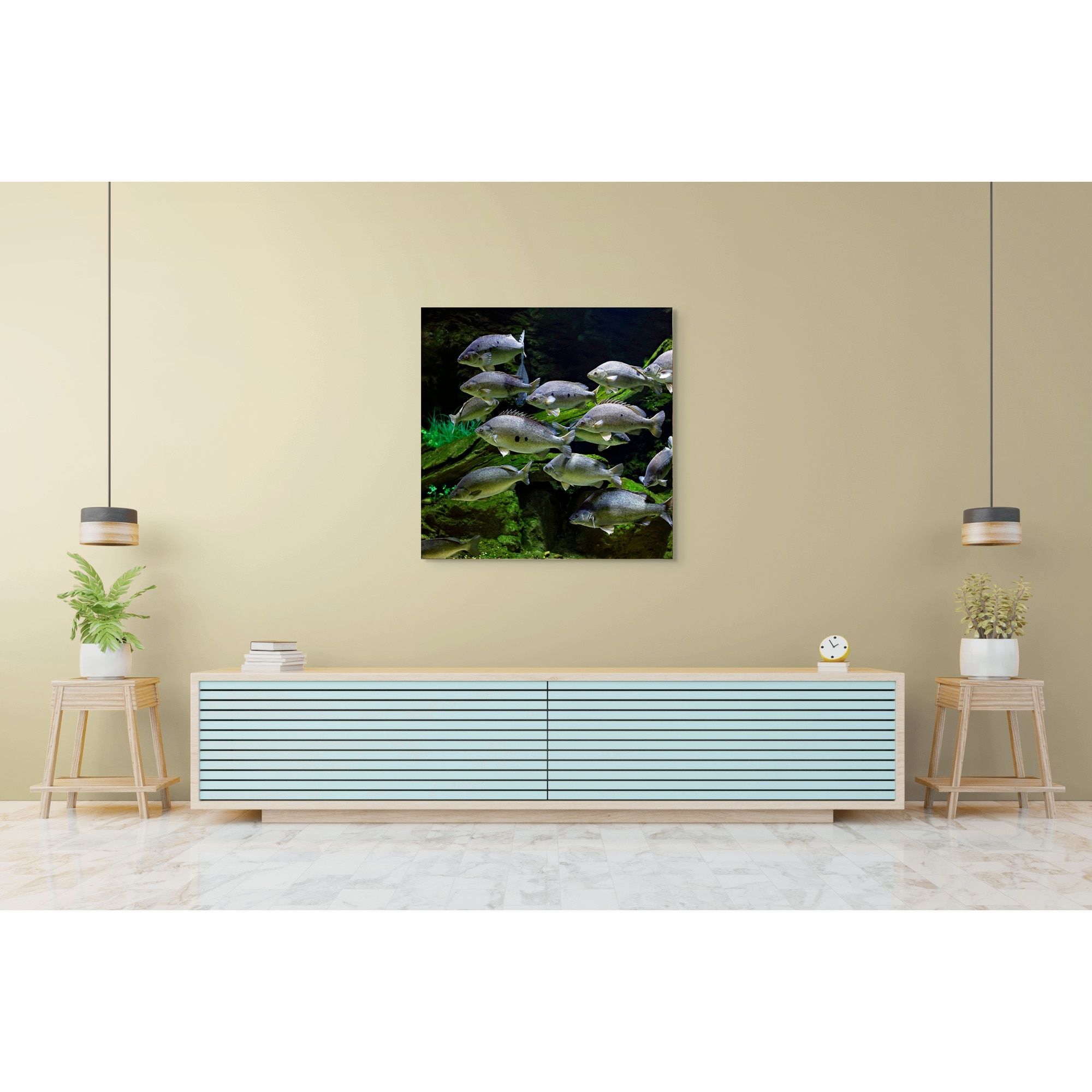 Tablou Canvas, "Dansul tacut al pestilor subacvatici", Pesti, Acvariu, Verdeata, Inot, Apei, Subacvatic, Vietuitoare, Mediu, Grup, Acvatic., 100 x 100cm