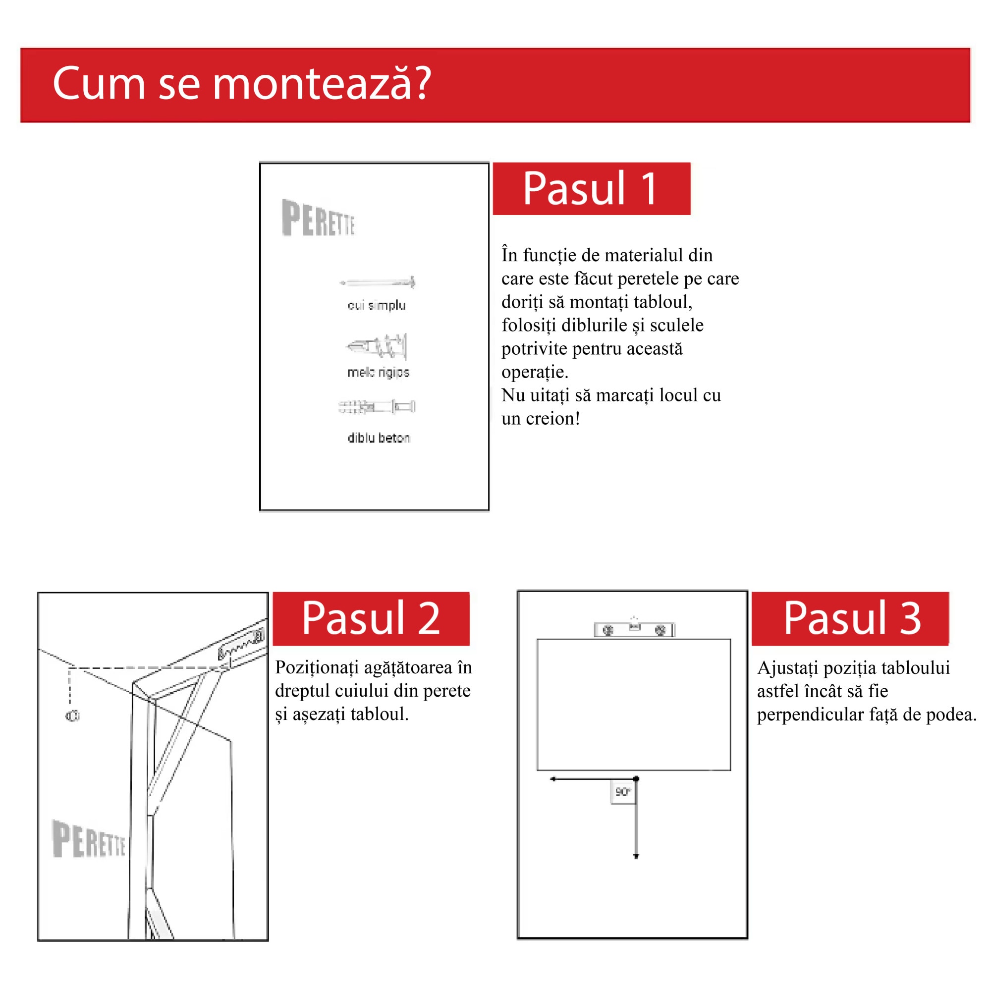 | Sistem de prindere | Agatatoare din metal pentru perete |