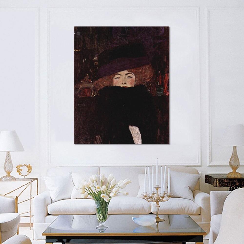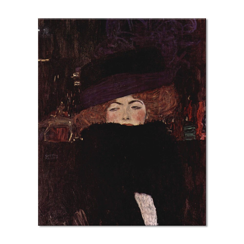 Tablou Canvas Premium Arta Clasica Heartwork, Reproducere, Gustav Klimt, Lady with Hat and Feather Boa 1909, 80 cm x 99 cm