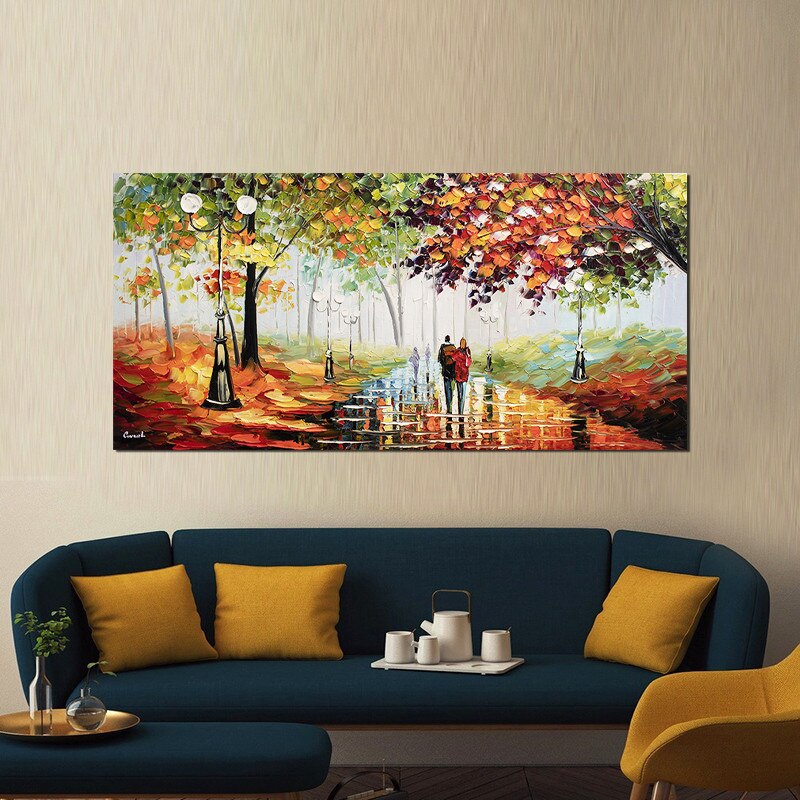 Tablou indragostiti pictat manual dormitor, living, Impreuna pentru totdeauna, 120x60cm ulei pe panza efect 3D, Leonard Covaci