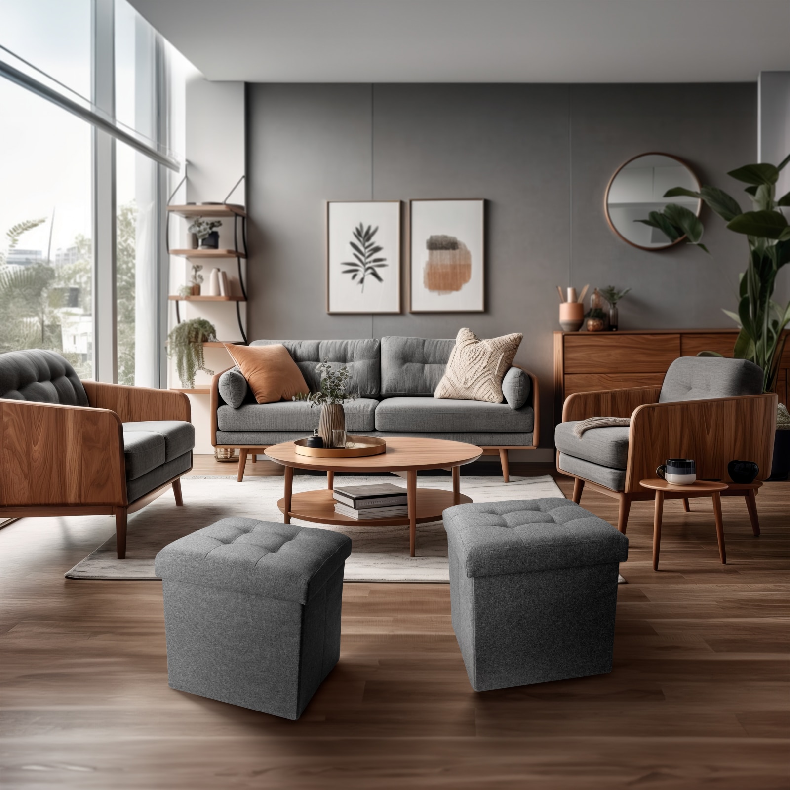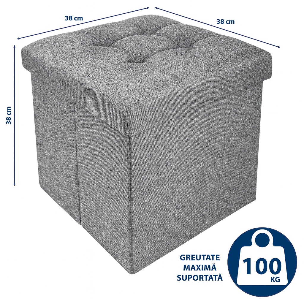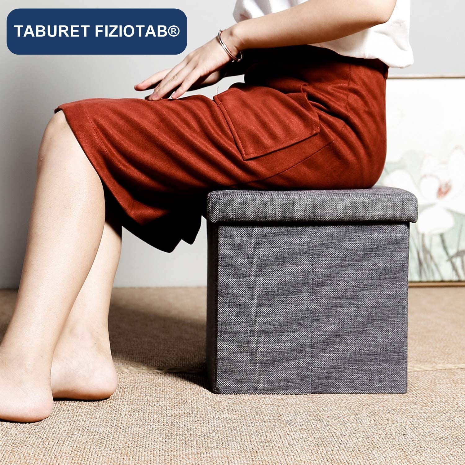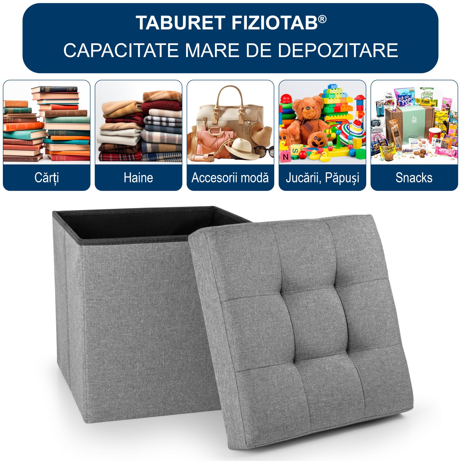 Taburet Pliabil cu Spatiu de Depozitare FizioTab®, Tip Cutie, Otoman, Culoare Gri, Textil 38X38X38 cm