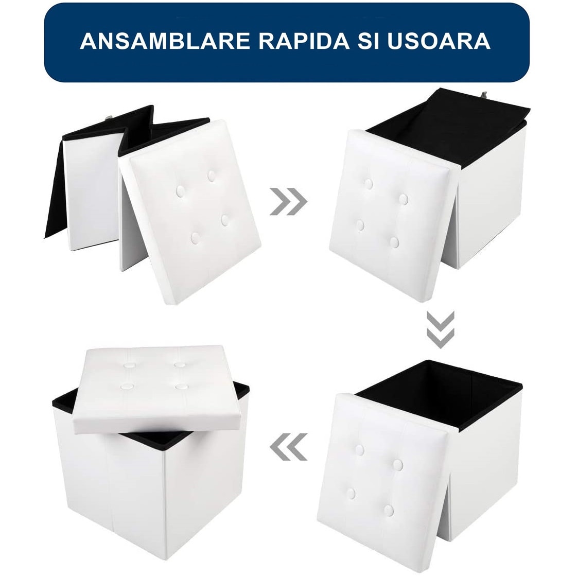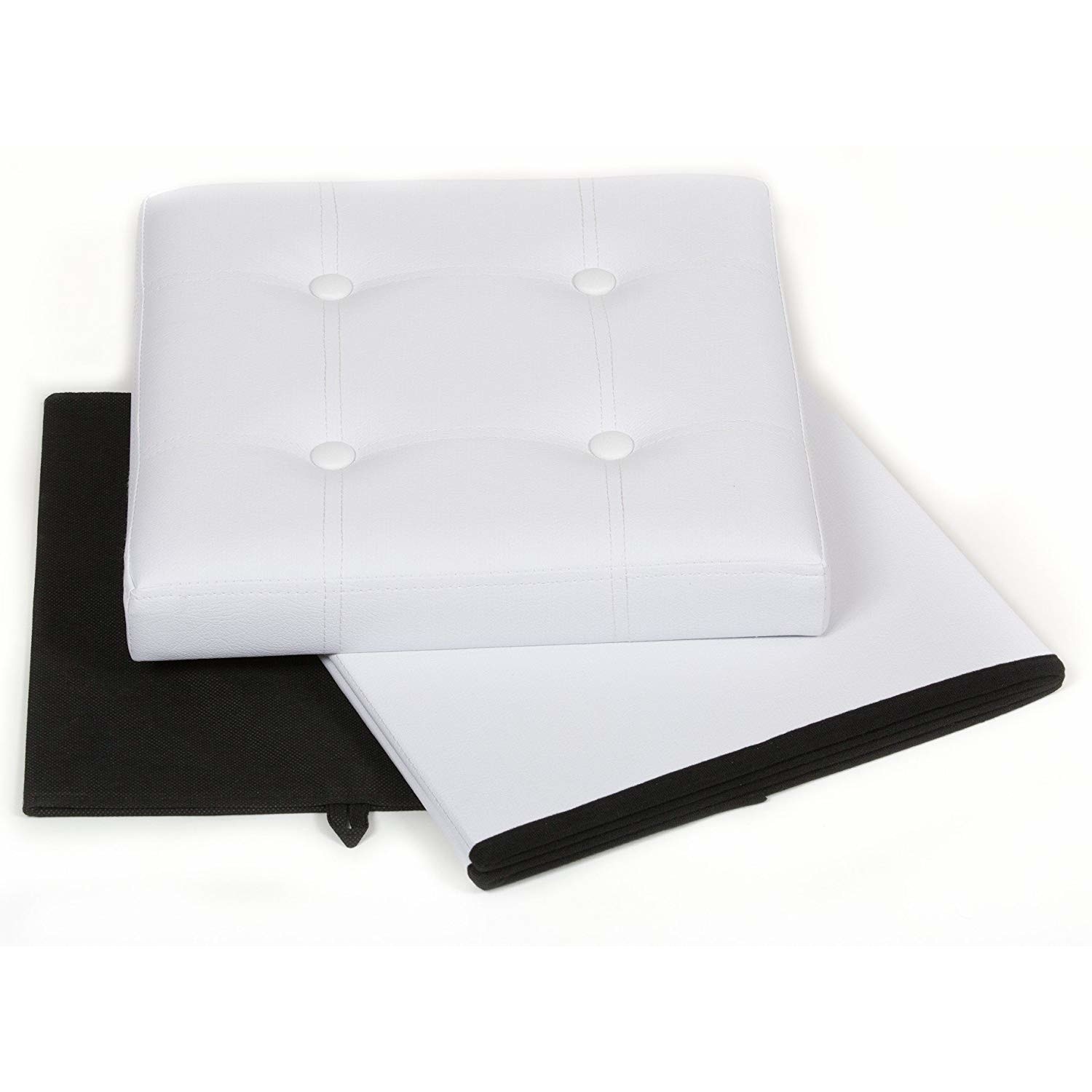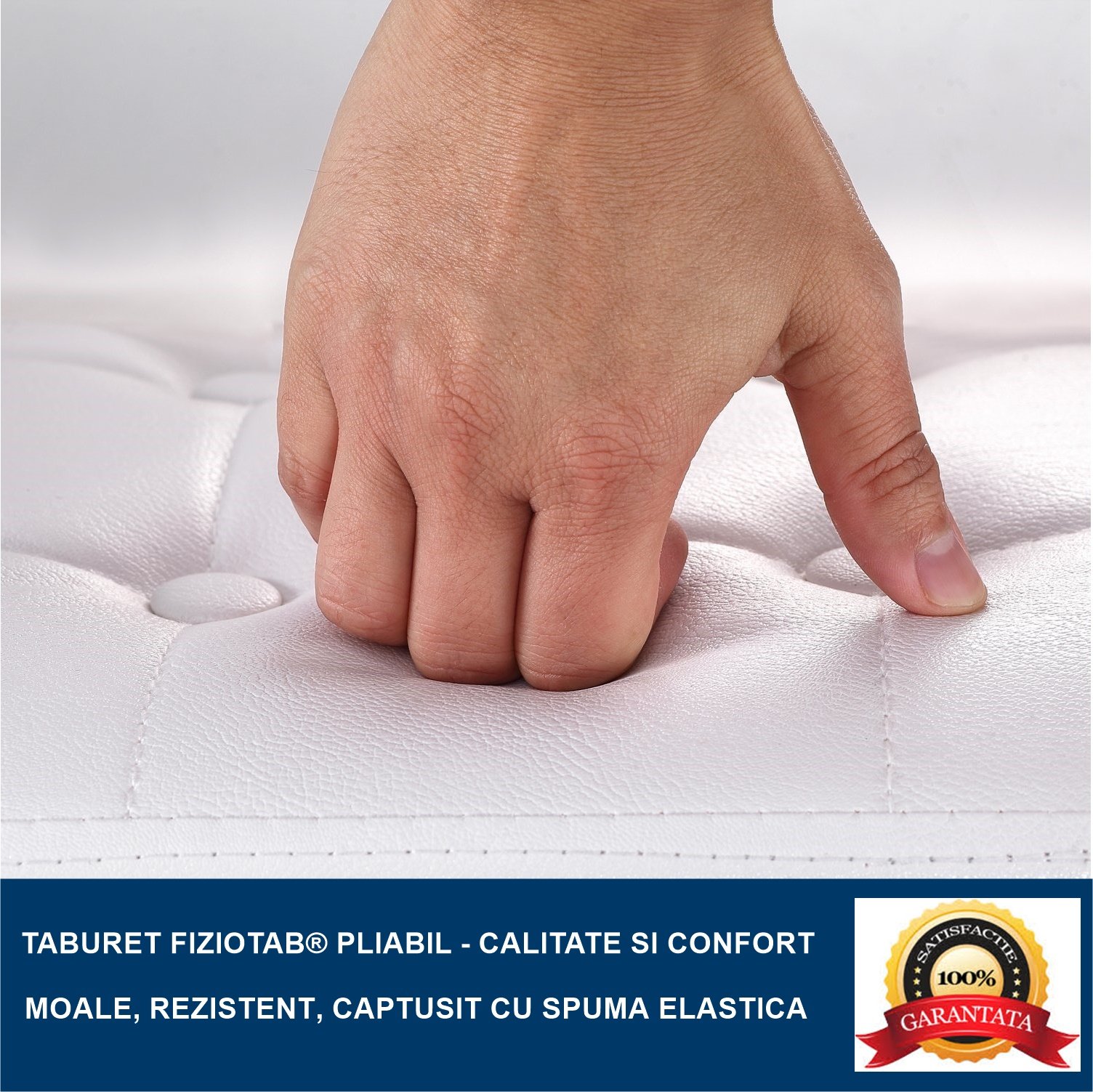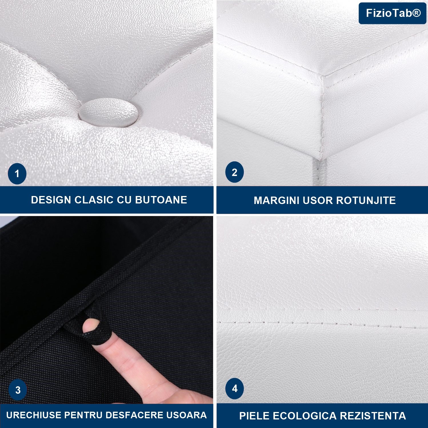 Taburet Pliabil cu Spatiu de Depozitare FizioTab®, Tip Cutie, Otoman, Piele Ecologica, 38X38X38 cm, Alb