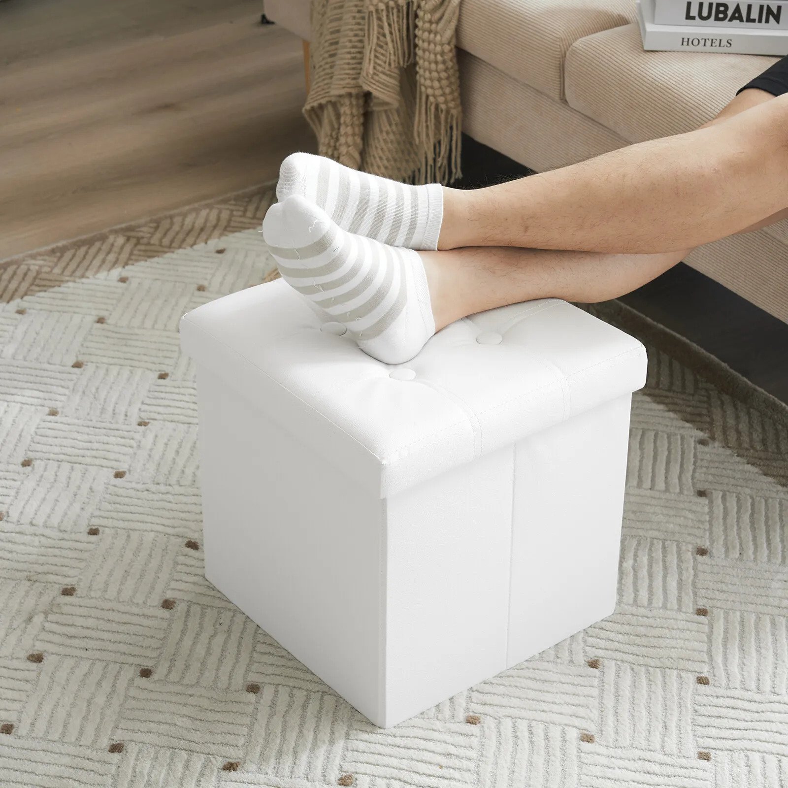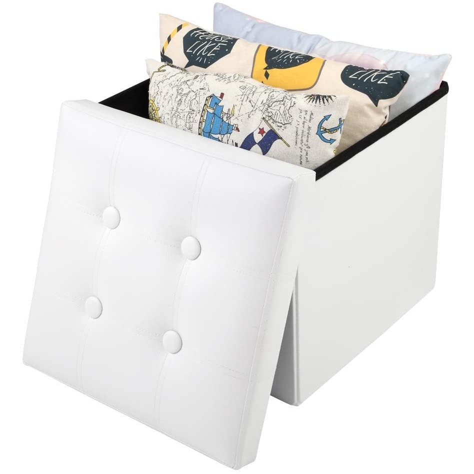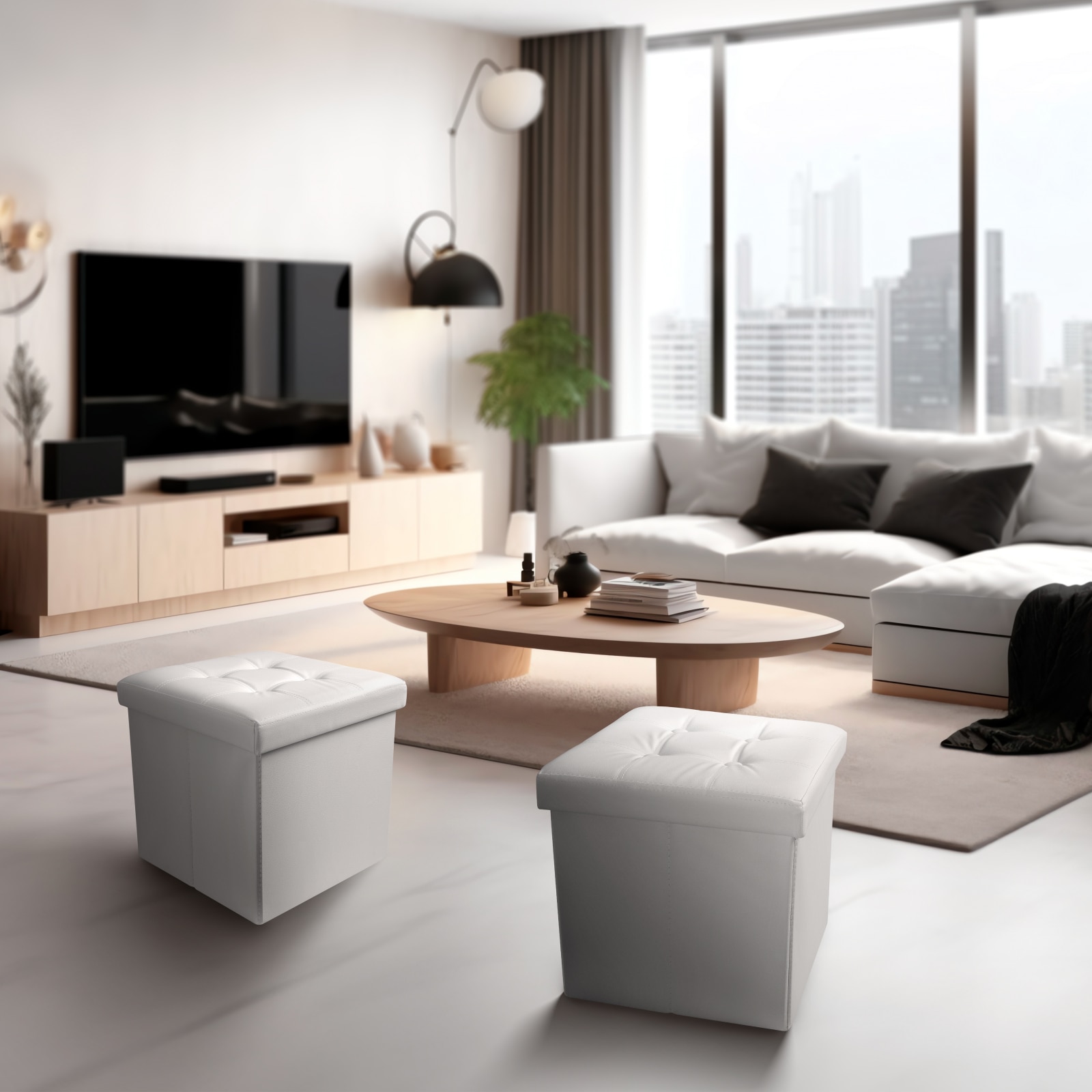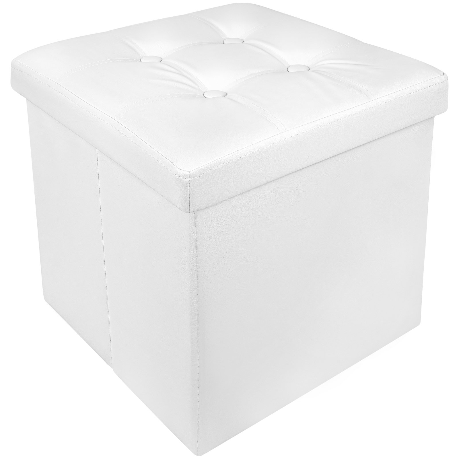 Taburet Pliabil cu Spatiu de Depozitare FizioTab®, Tip Cutie, Otoman, Piele Ecologica, 38X38X38 cm, Alb