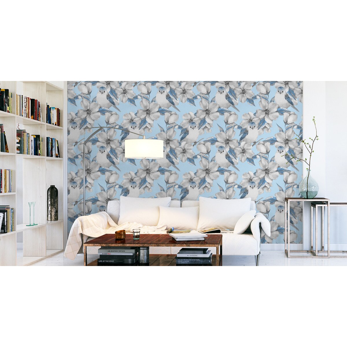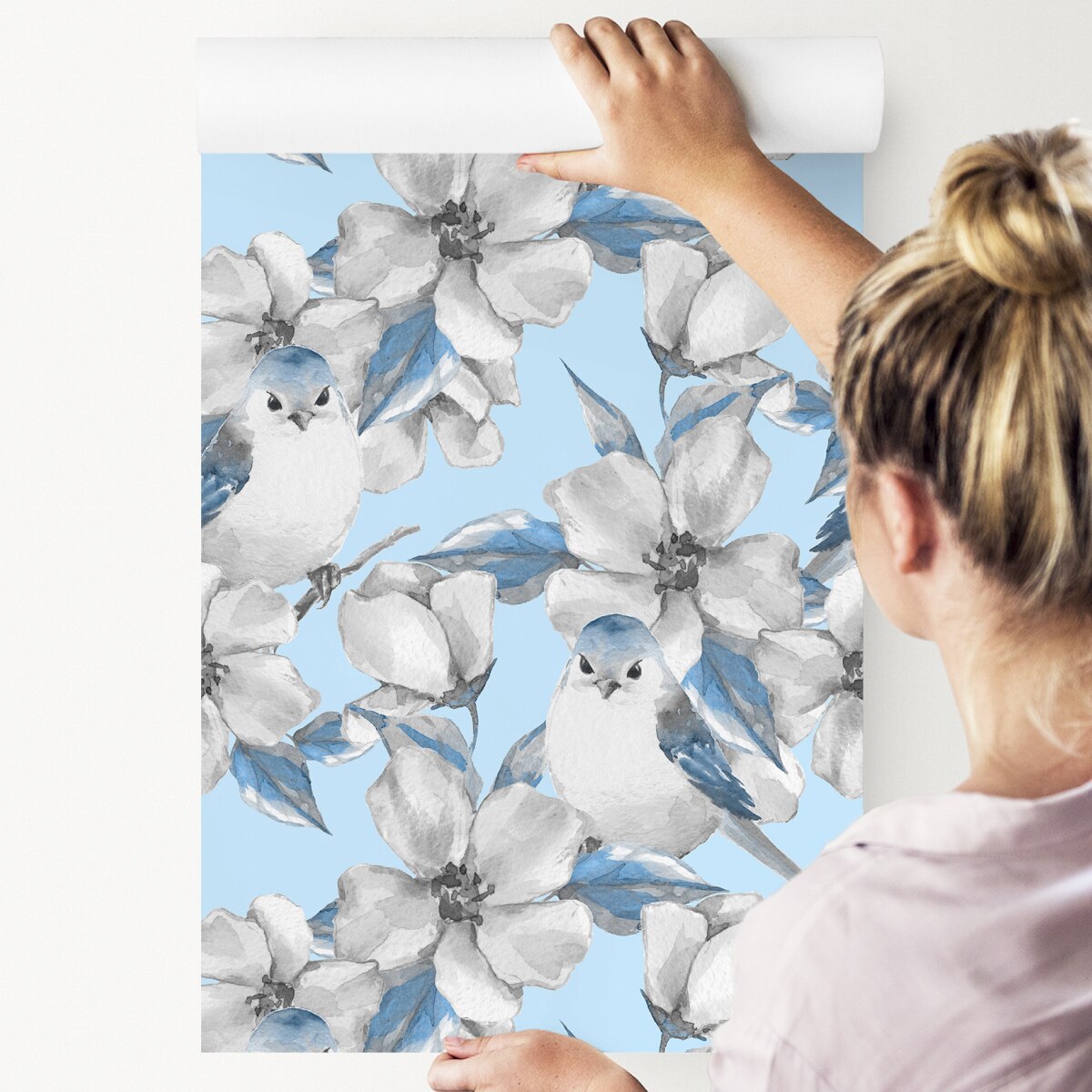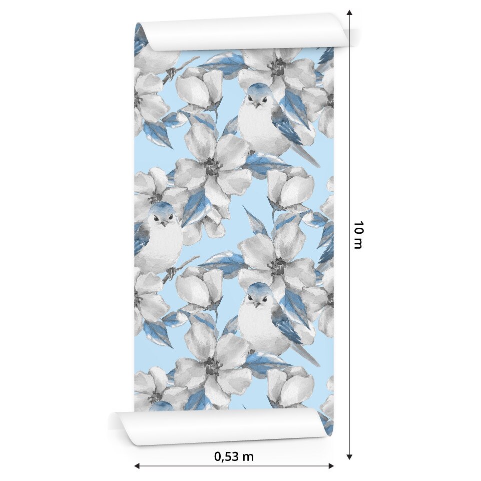 Tapet Flori de Primavara si Pasari Desenate cu Acuarele 10m Rola