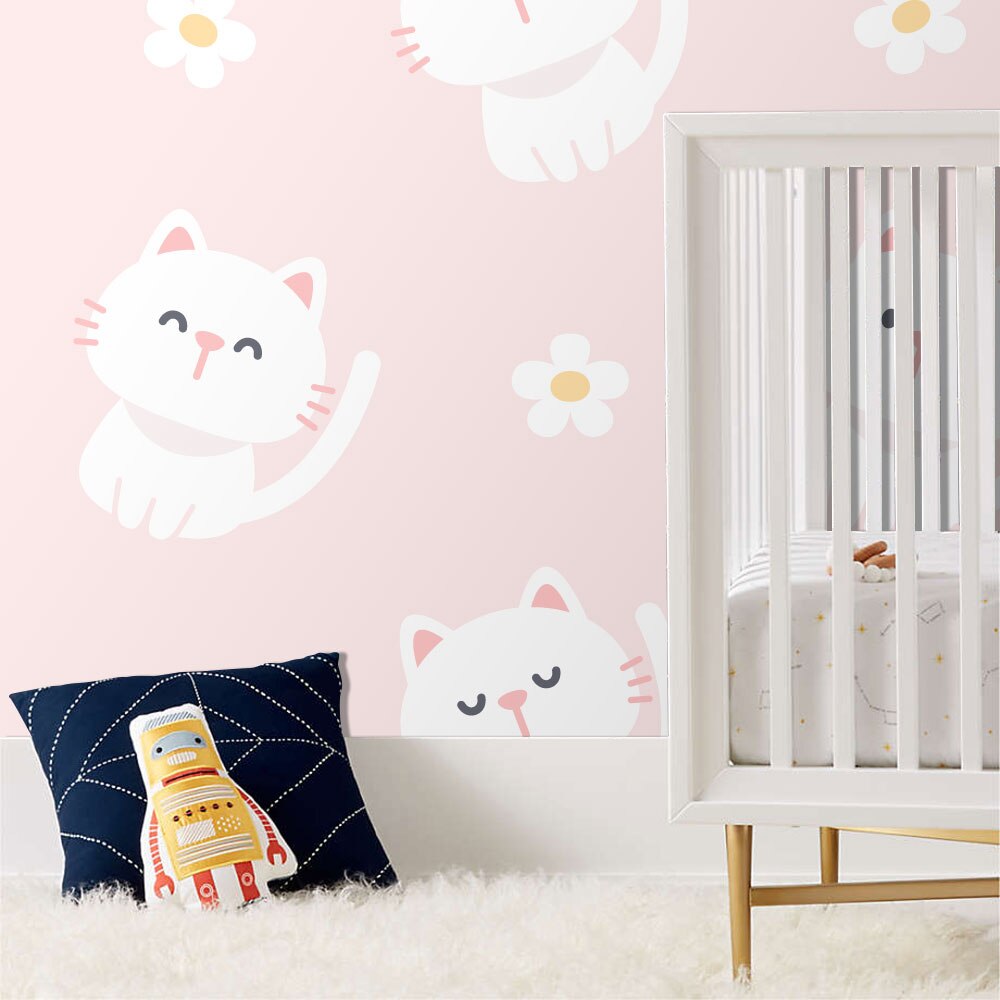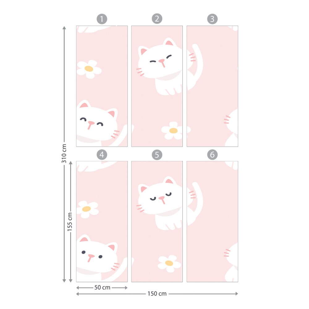Tapet Premium Art Kids, Pisicute pe fundal roz pal, Ecologic, Non-Woven, Set 6 Role, 150x310 cm